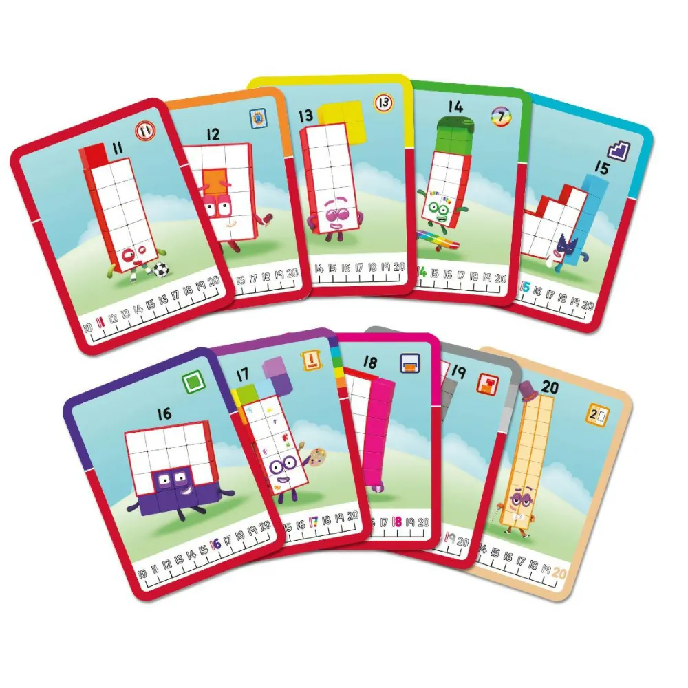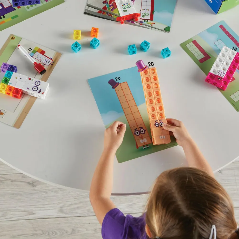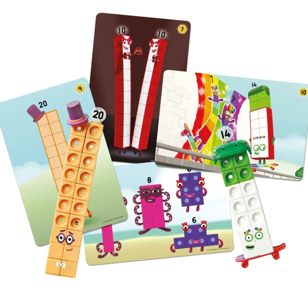 Dit barn kan bygge de 10 figurer, som sættet er bygget op omkring, med det korrekte antal Numberblocks, så hvert tal får sin egen figur. Herefter kan man matche figuren med aktivitetskortene og endda skrive svar på kortene.