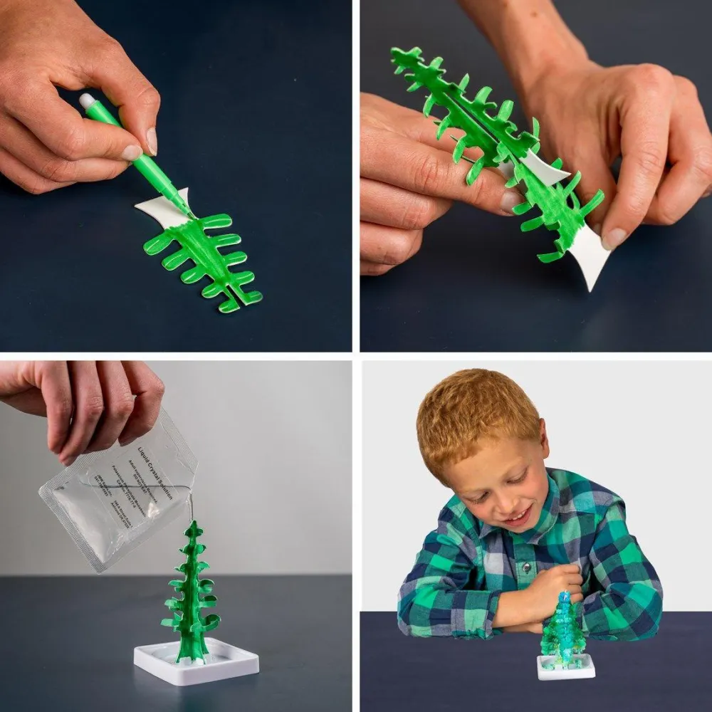 De fine træer skal først farves med tusserne, og så går I i gang med krystal-eksperimentet.