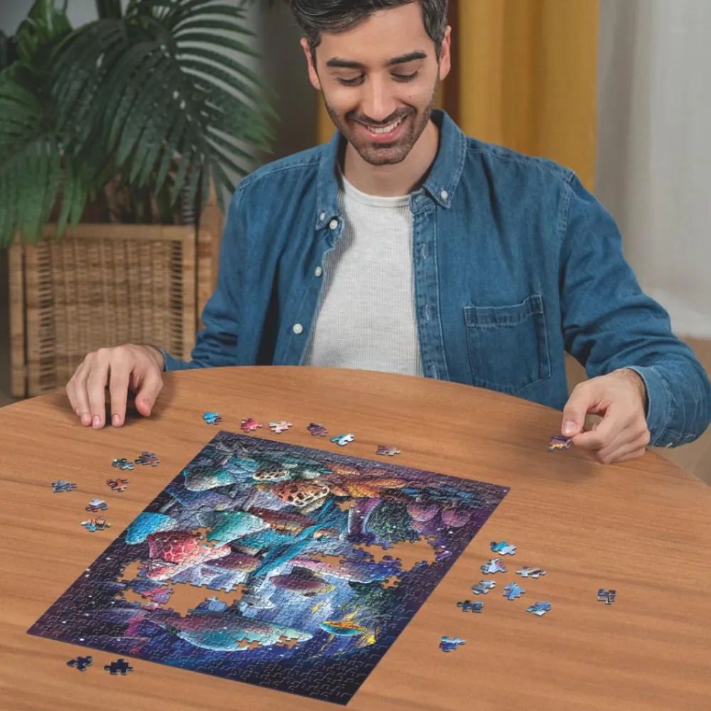Klassisk 500 brikker puslespil med motiv fra en magisk nat i svampeskoven.