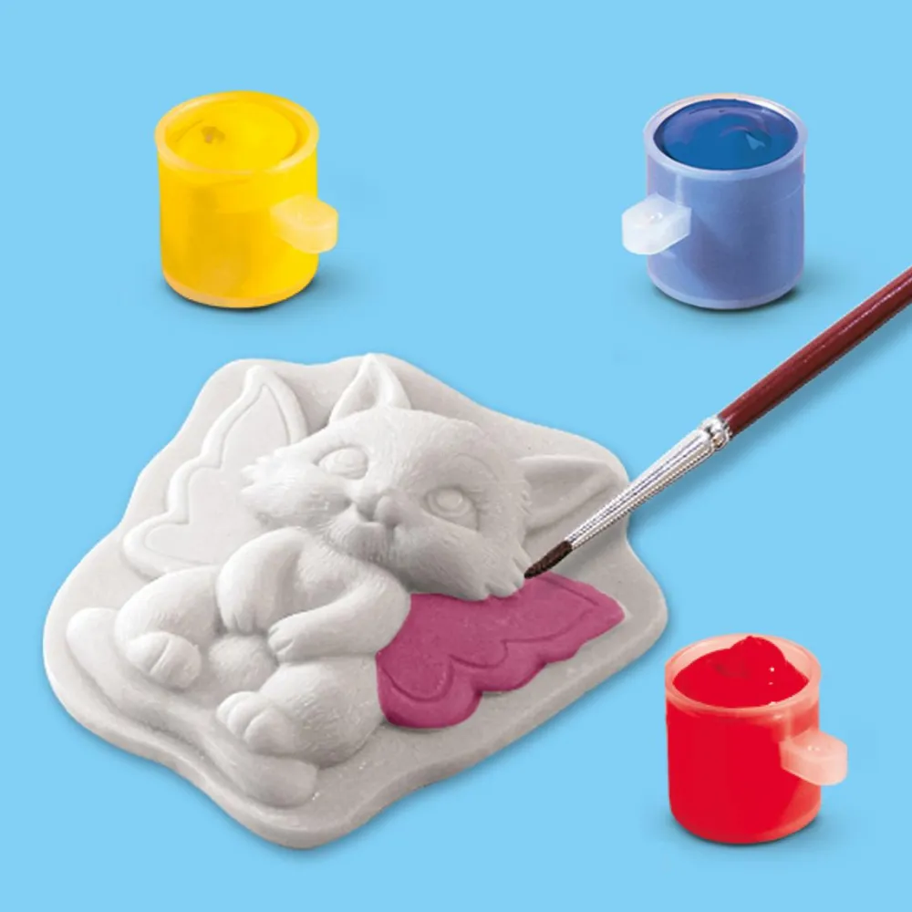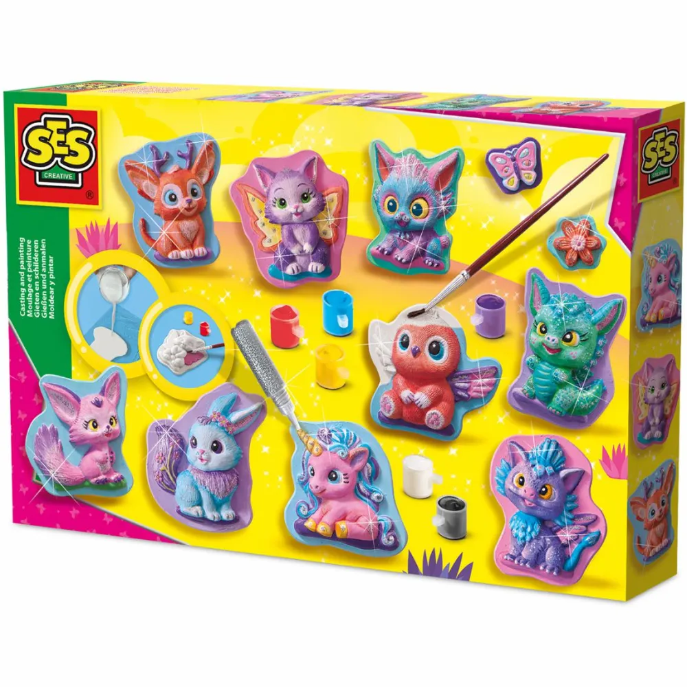Her kan dit barn være med til at blande gips og støbe sine egne fantasifigurer, som efterfølgende kan dekoreres med den maling der følger med – og det I har liggende i forvejen.