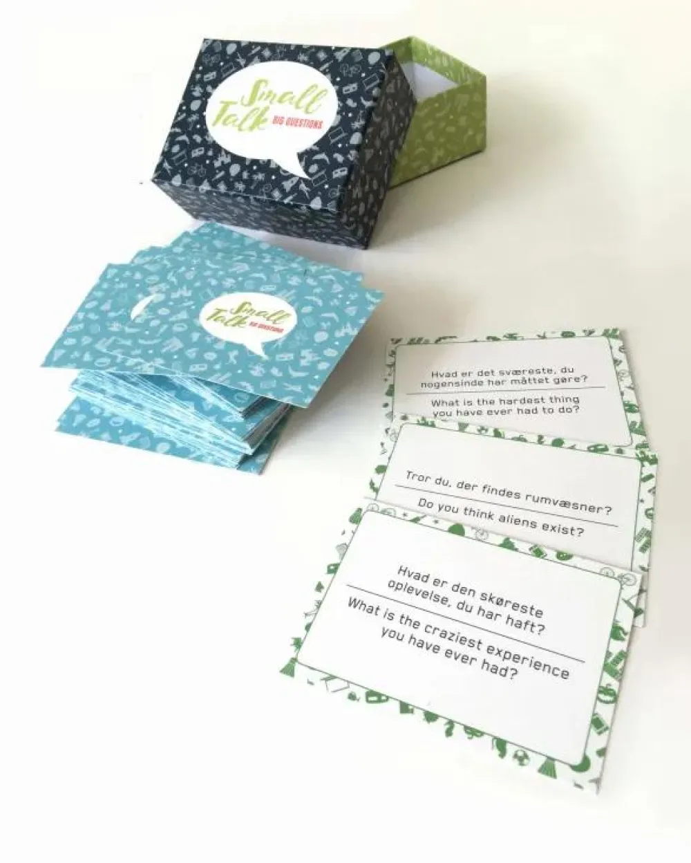 Noget af det, vi super godt kan lide ved samtalekortene er, at der ikke er rigtige og forkerte svar, og at spørgsmålene står på både dansk og engelsk. Brug spillet som en god anledning til at sætte nærvær og samvær i fokus – og hold en pause fra de digitale platforme.