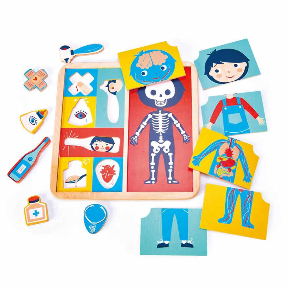 Av, nogle gange gør det ondt i kroppen. Med puslespillet her kan dit barn få en forståelse for, hvad der er inde i kroppen af knogler og muskler, og hvordan man kan hjælpe kroppen til at få det bedre.