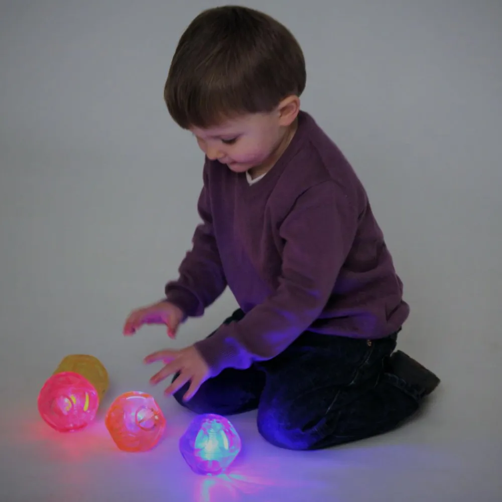 Hoppebolde med blinkende lys gør det ekstra sjovt at lege kaste-gribe lege.