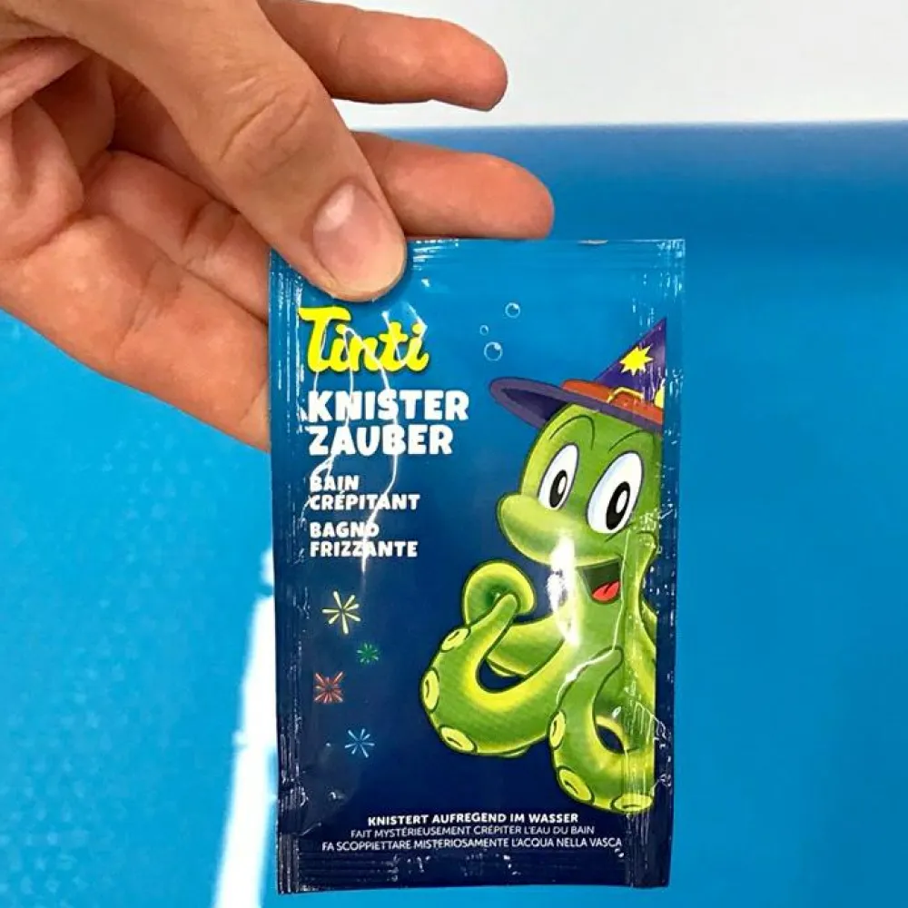 Tintis produkter til knitrebad og farvet badevand er dermatologisk testet og kan også bruges til børn med sart hud. Farverne bliver ikke siddende på huden eller på fliserne. Farverne er lavet af fødevare-farver, som er helt ugiftige.