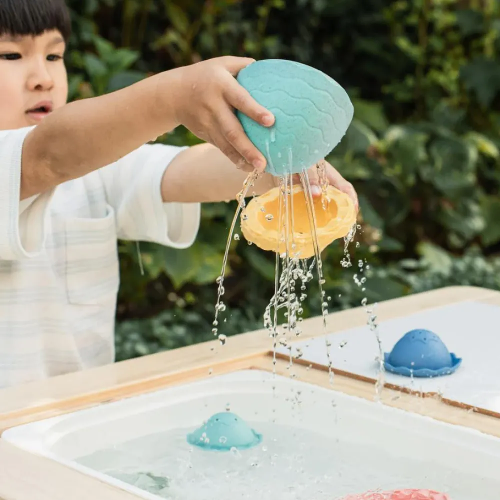 Med dette fine badeæg kan dit barn hælde og dryppe, åbne og lukke, mens det dejlige badevand vasker alle render og pletter af dit barns krop.