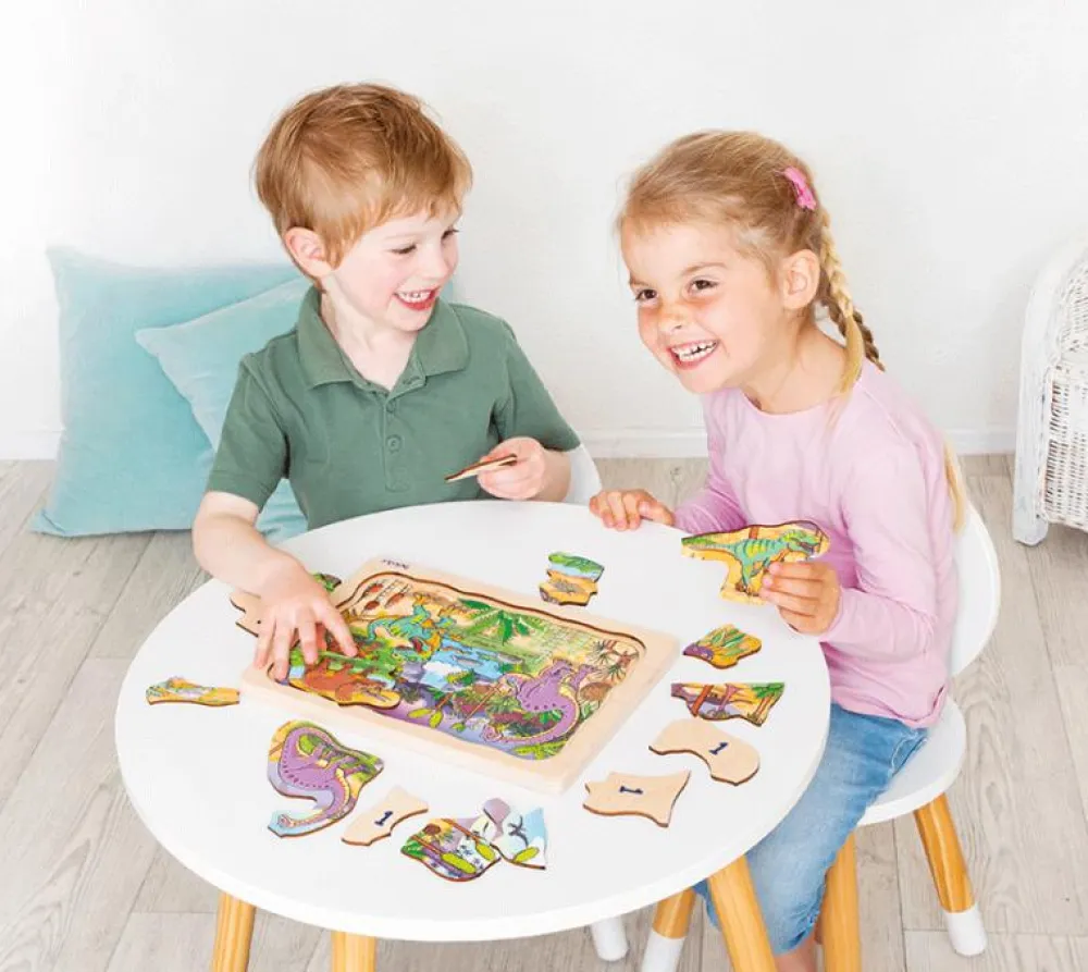 Har puslespillet et særligt emne som fx dyr, anatomi eller geografi, så styrker det ordforrådet hos dit barn, når I snakker om det, mens I lægger brikkerne.