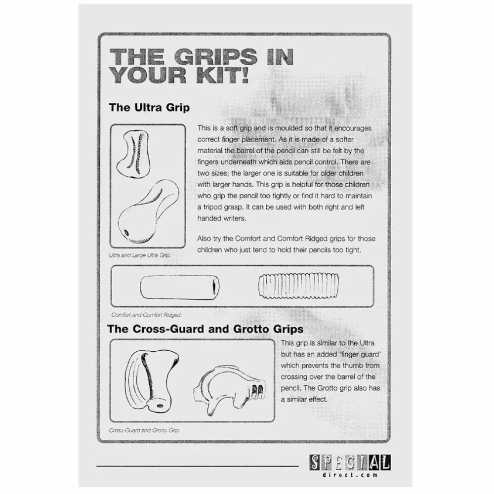 Der følger vejledningshæfte med fuld af tips til at bruge grebene og vælge det rette, der ikke belaster fingrene.
