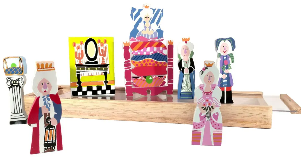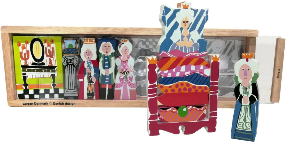 Når børn skal tilegne sig forståelse for historier, er fysiske redskaber en stor hjælp. Dette skønne klodssæt giver børn mulighed for at lege med eventyrets handling, og det er også en virkelig god måde at levendegøre selve eventyret, mens det fortælles. På den måde er fortælleren ikke gemt bag en bog, men aktiv og i tæt kontakt med de lyttende børn, som kan blive deltagende børn i stedet for passive børn.