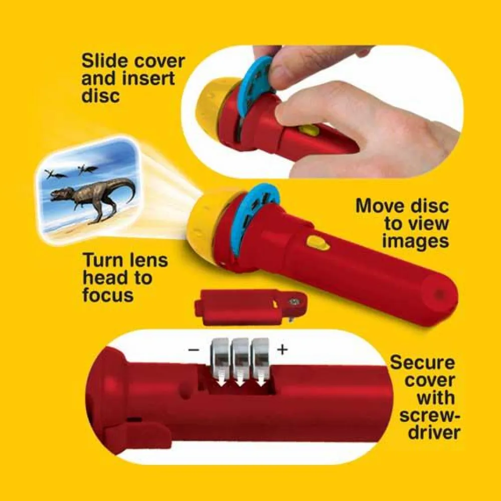 Sej lommelygte, som kan vise 24 flotte billeder af forskellige dinosaurer.