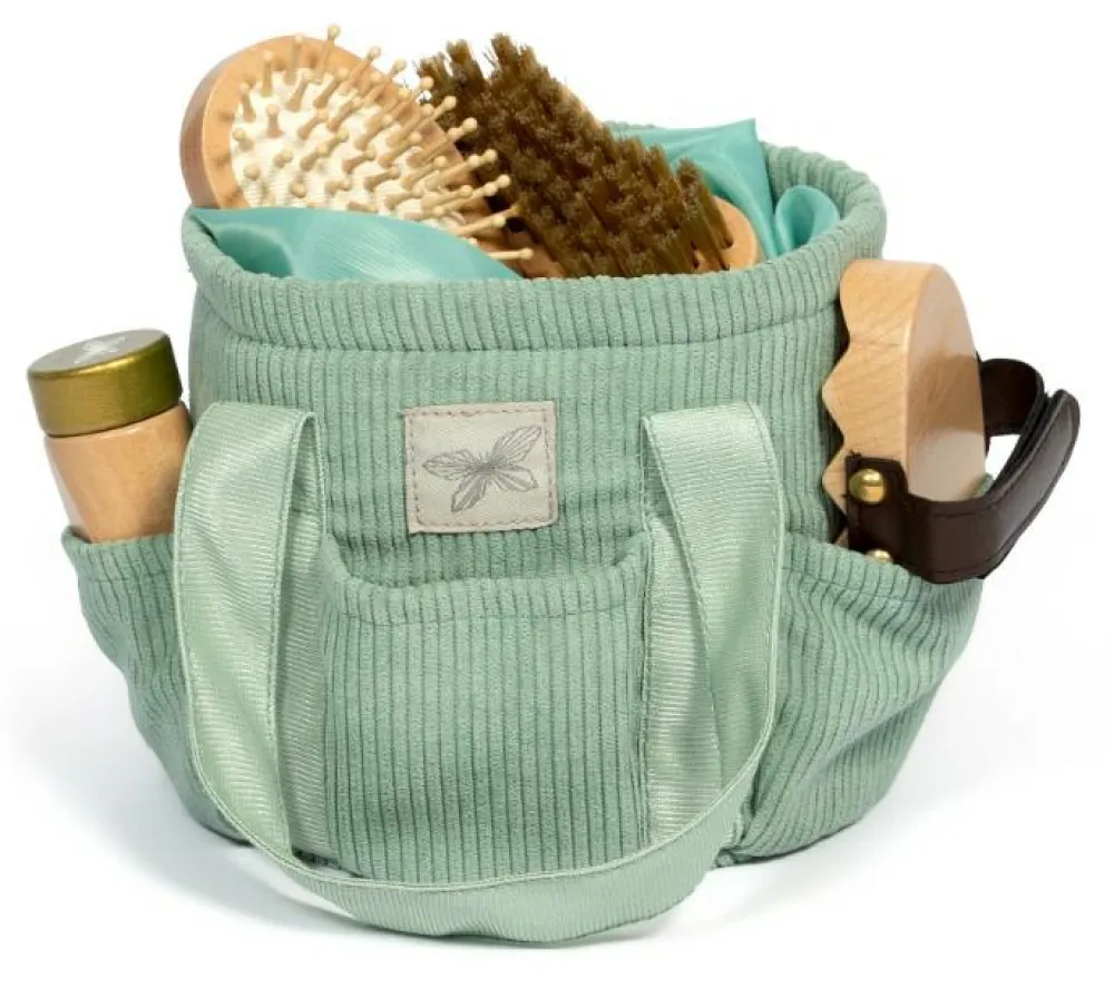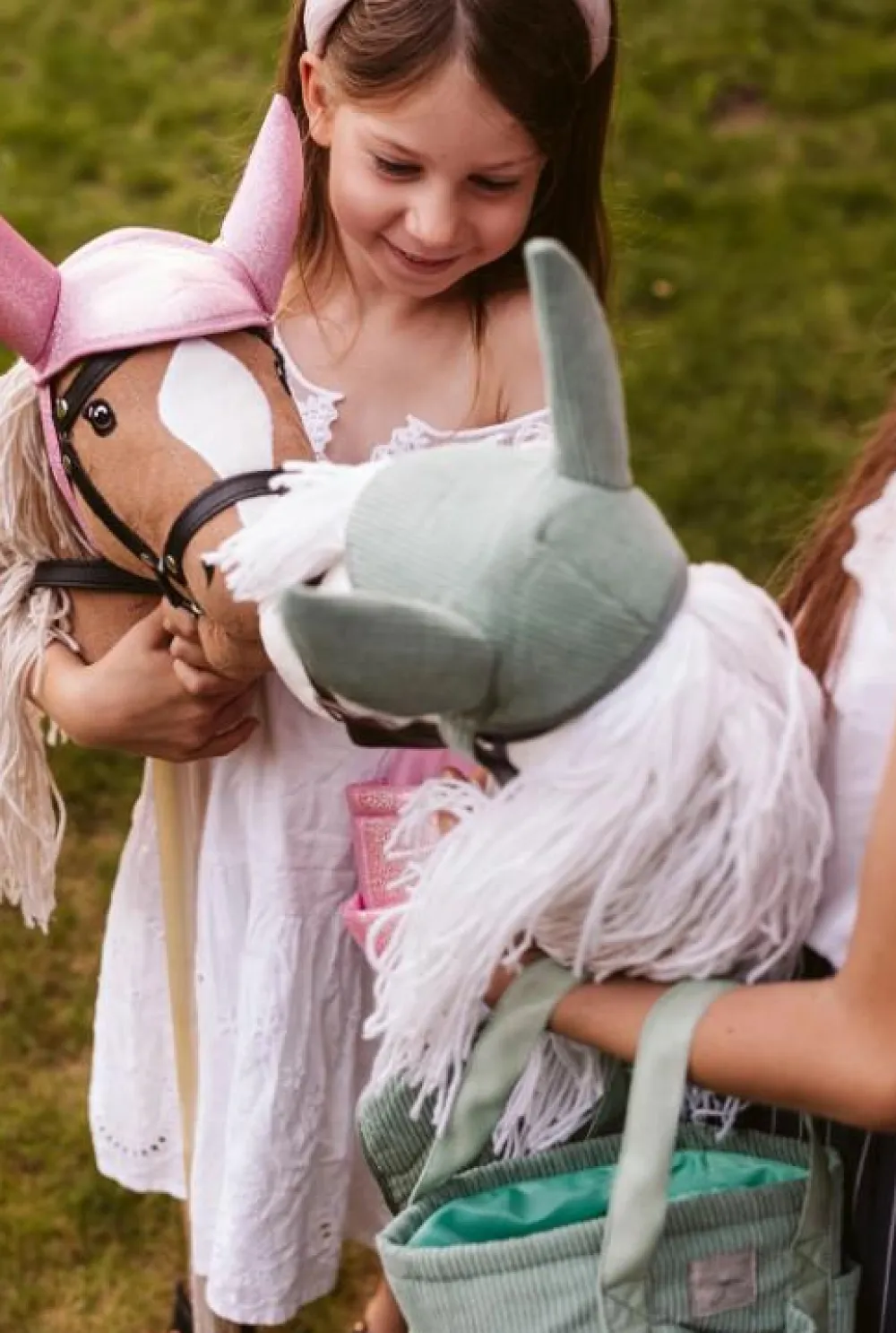 Skøn, blød taske, der kan fyldes med dukkens puslesager og tøj eller kæphestens striglesæt – eller andre ting, dit barn skal opbevare eller have med sig.