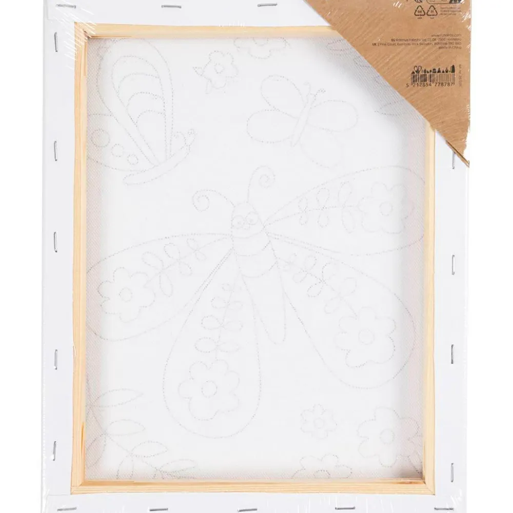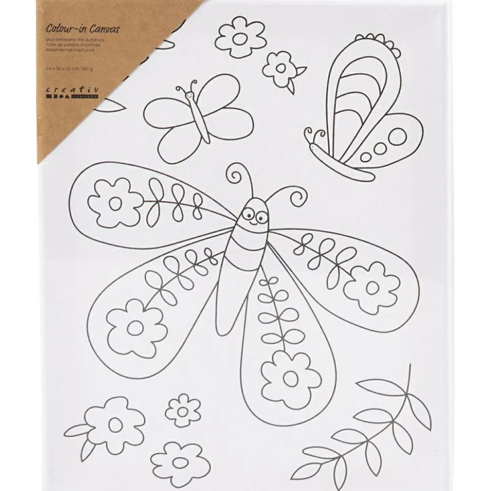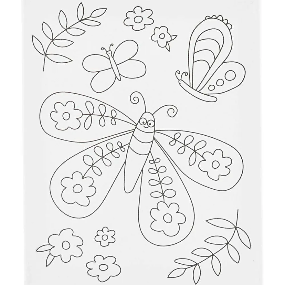 For nogle børn kan det være nemmere at komme i gang med at male, hvis der er noget at farvelægge. Med lærredet her kan alle blive små kunstnere og vælge nogle flotte farver til sommerfuglen og dens venner i baggrunden.