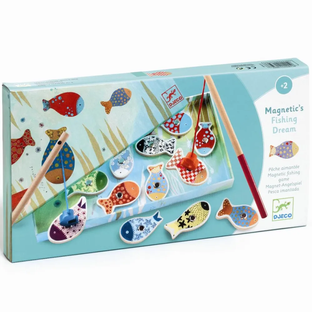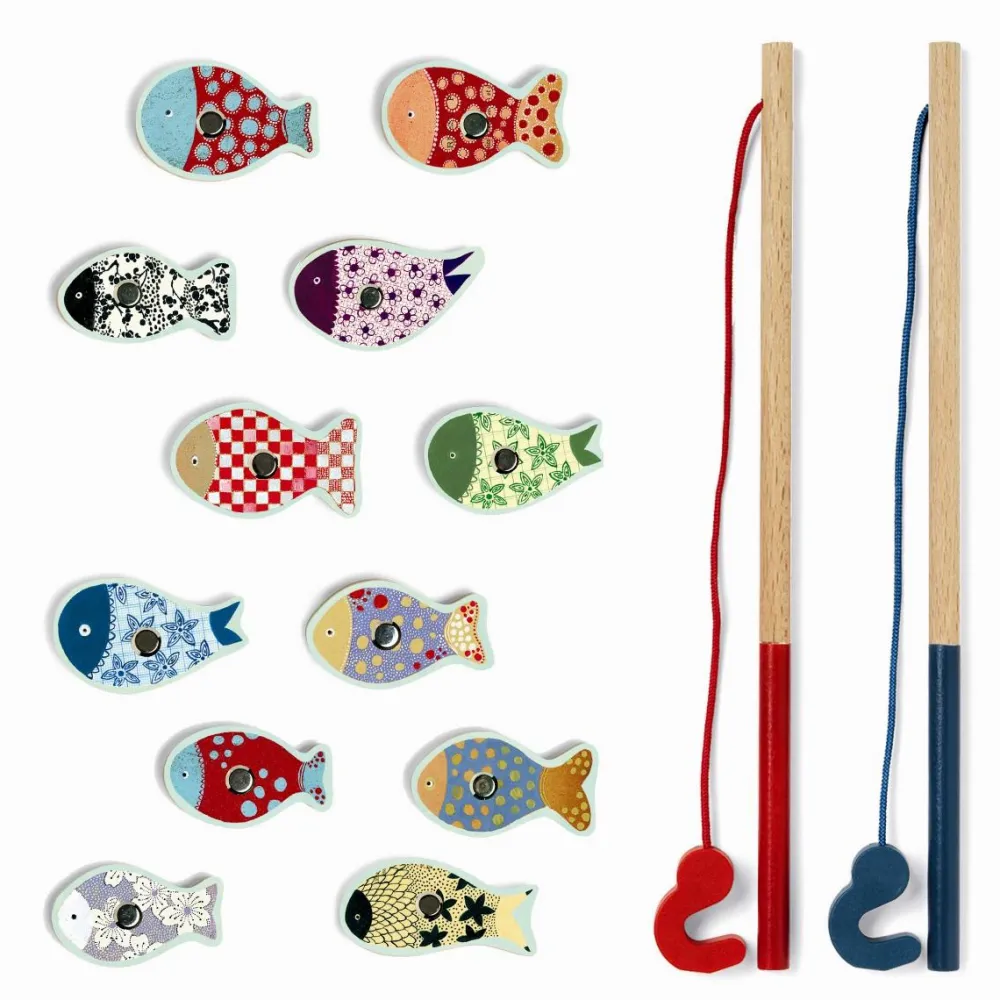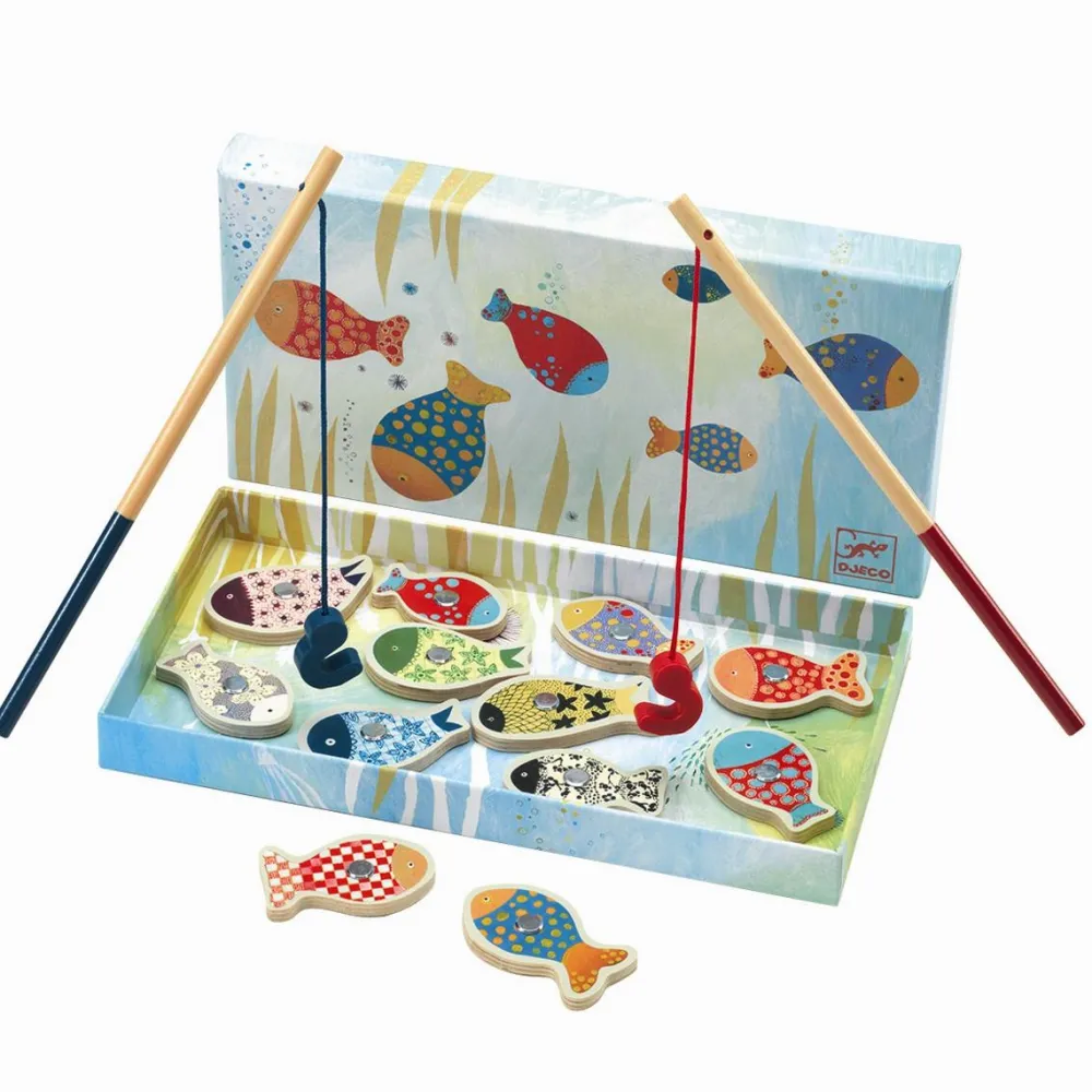 Fiskespillet er lidt af en klassiker, som du sikkert også kender. Denne variant har flotte mønstrede fisk, som I kan snakke om – det styrker dit barns ordforråd.