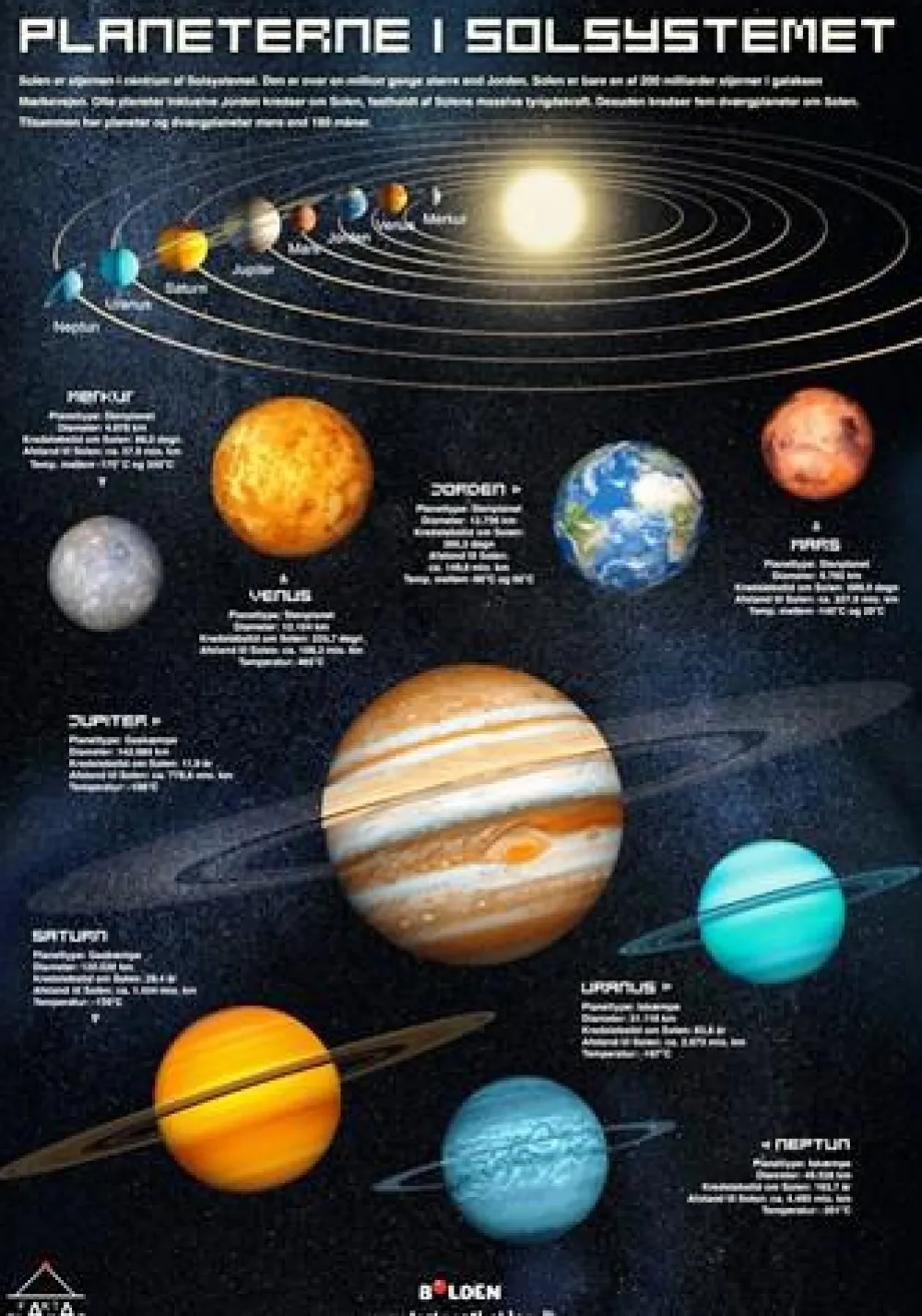 Her kan du fx læse, at Jorden er 149,6 km fra Solen, og at Merkur har temperaturer mellem -170 og 350 grader.