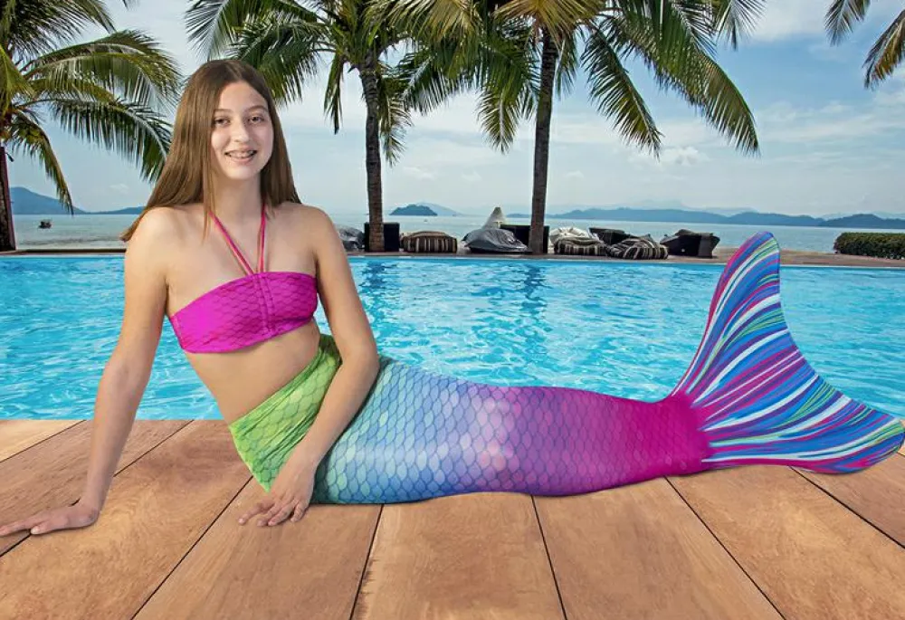 Nu kan dit barn svømme som en havfrue eller havmand og føle den fantastiske måde at glide gennem vandet, når halens stærke slag får kroppen til at strømme fremad, nedad, rundt eller op.