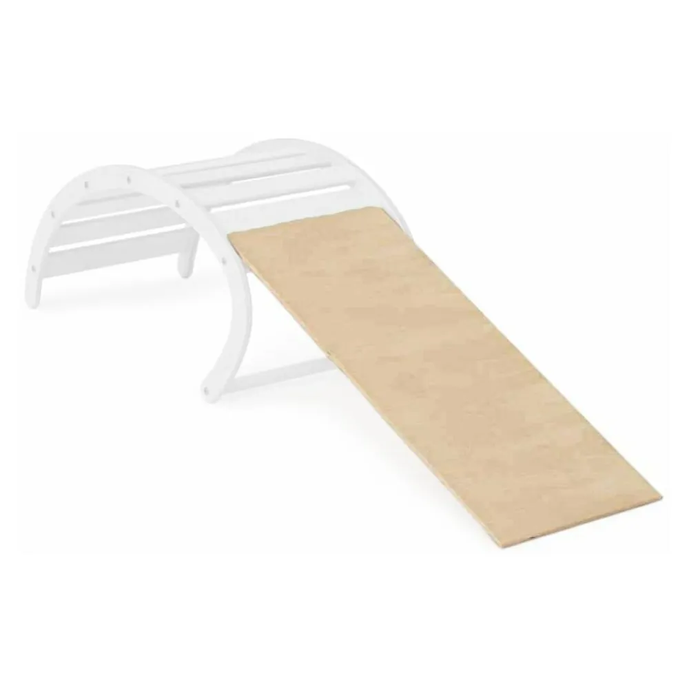 Rutcheplade af lækkert, ubehandlet og helt glatslebet træ, som passer til Klettering klatrevippe og den klatretrekant, der hedder “Zicklein”.