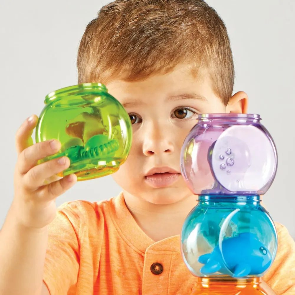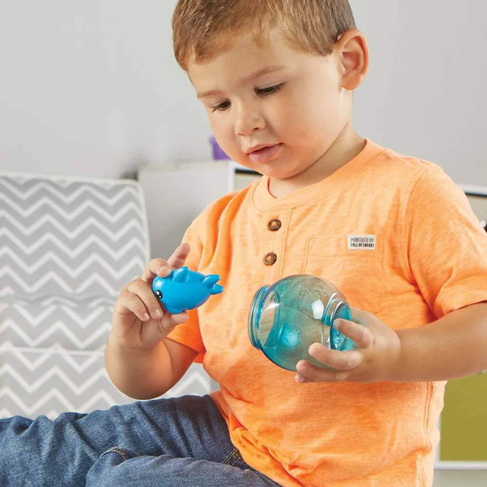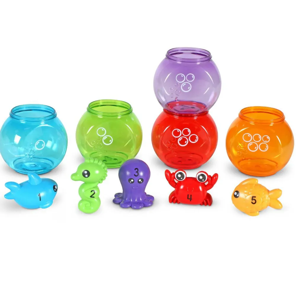 Med de 5 søde fisk og deres matchende bowle kan dit barn både lege på et bord, i en bakke med vand eller tage hele molevitten med i bad.