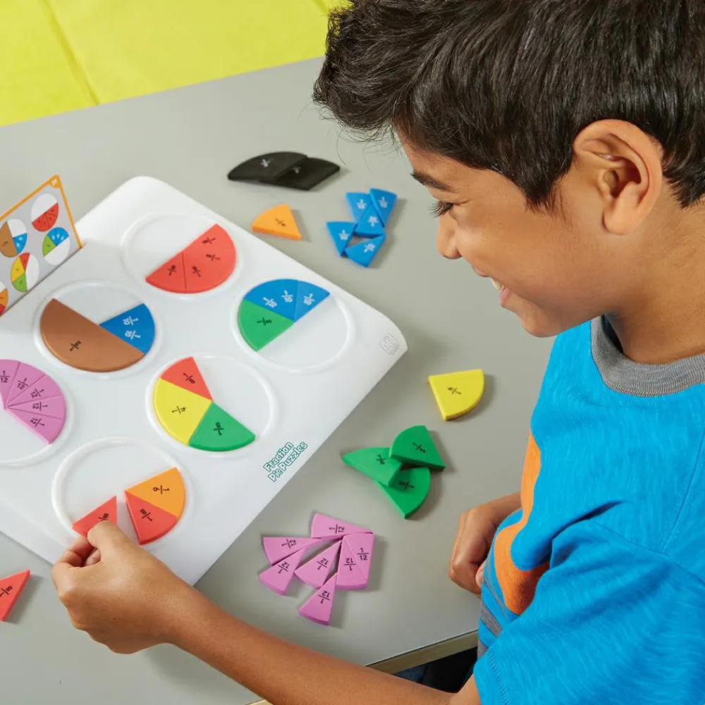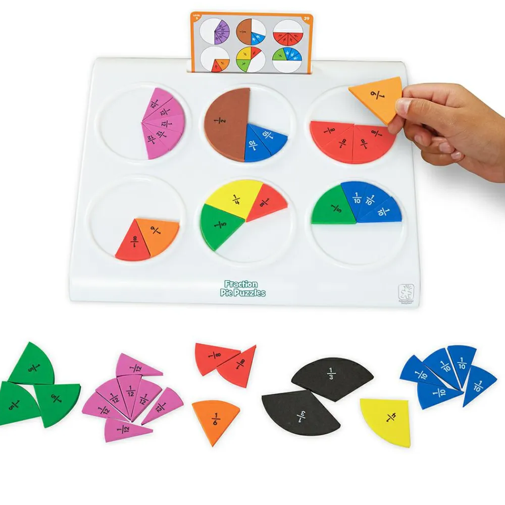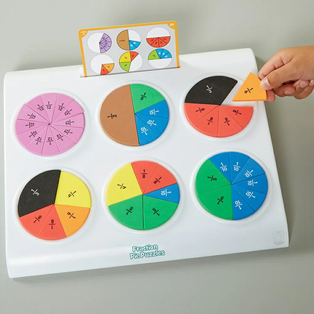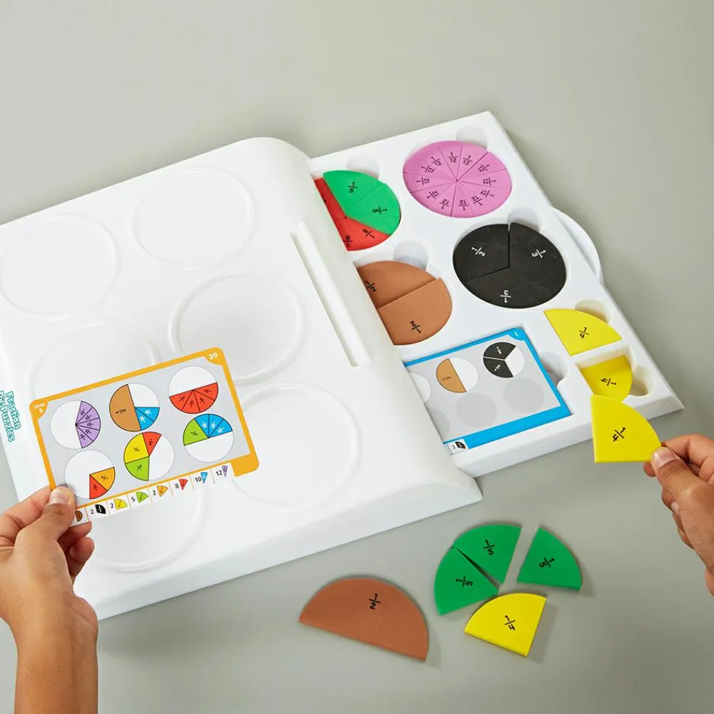 Dette aktivitetssæt gør det mere tilgængeligt at lære brøker, fordi den fysiske dimension er med. Børnene har brøkerne i hænderne og kan se, hvordan de forskellige tællere og nævnere passer sammen.