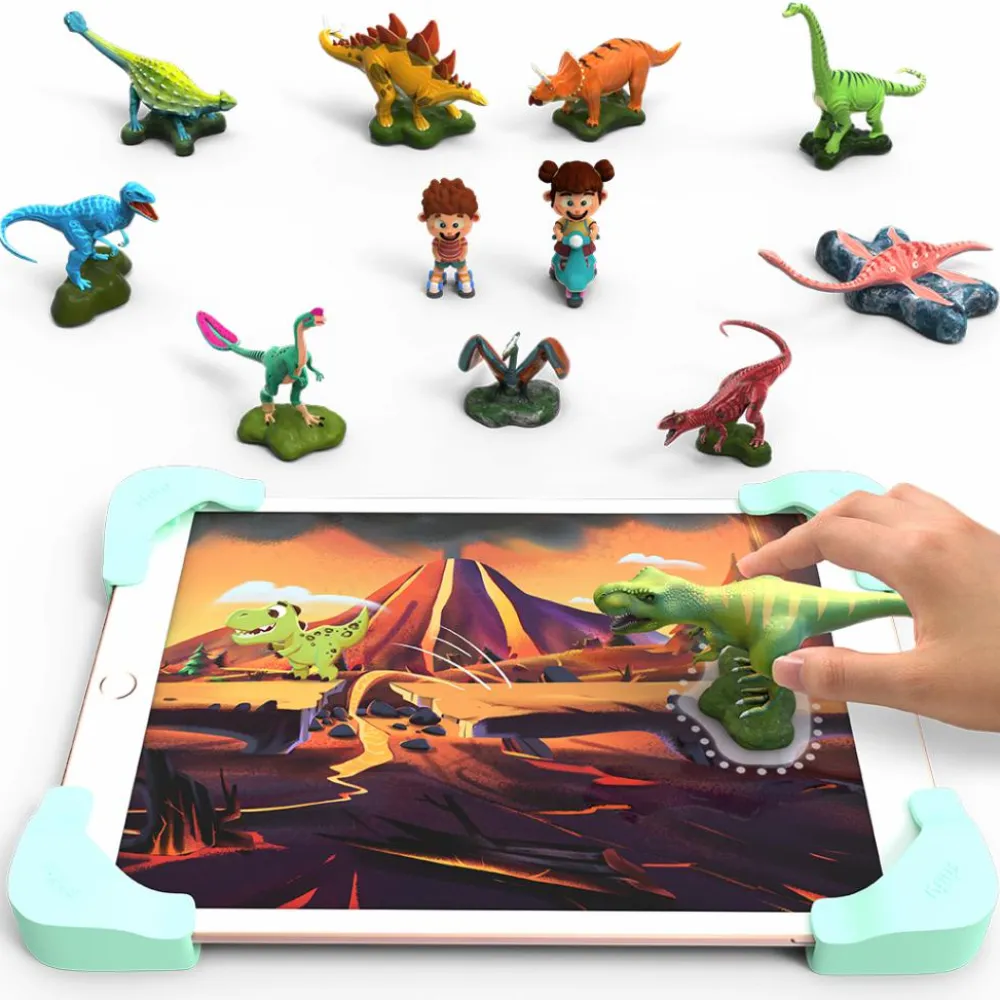 Brug de mange figurer til at gå på opdagelse i dinosaurernes verden. Lær fantastiske fakta om de forhistoriske kæmper, løs opgaver med dem, giv dem mad og blev en del af den verden, de levede i. Det er nemt at komme i gang, og dit barn vil kunne spille Tacto Dino selv efter kort tid.