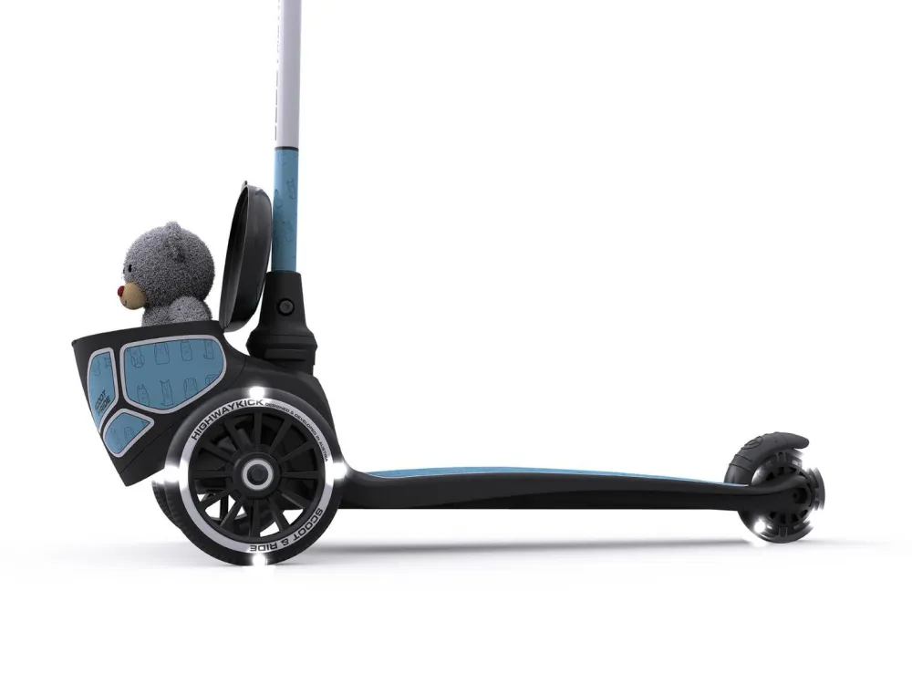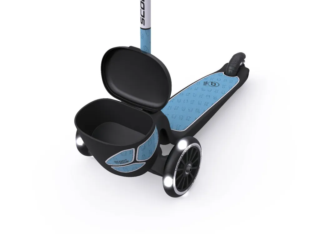 Dette lyserøde løbehjul har en lille boks til opbevaring forrest. Perfekt når bamsen skal med på tur eller til et par ekstravanter eller en flot sten fundet på turen.