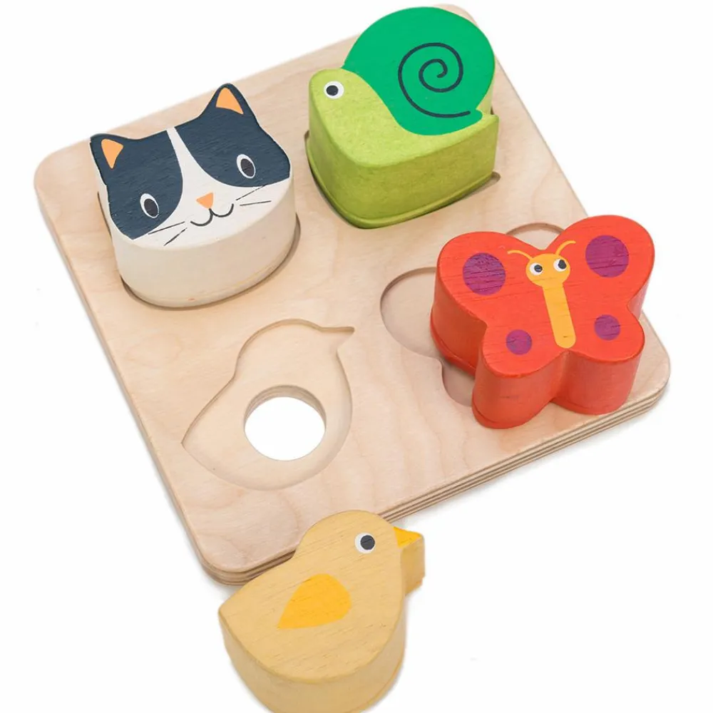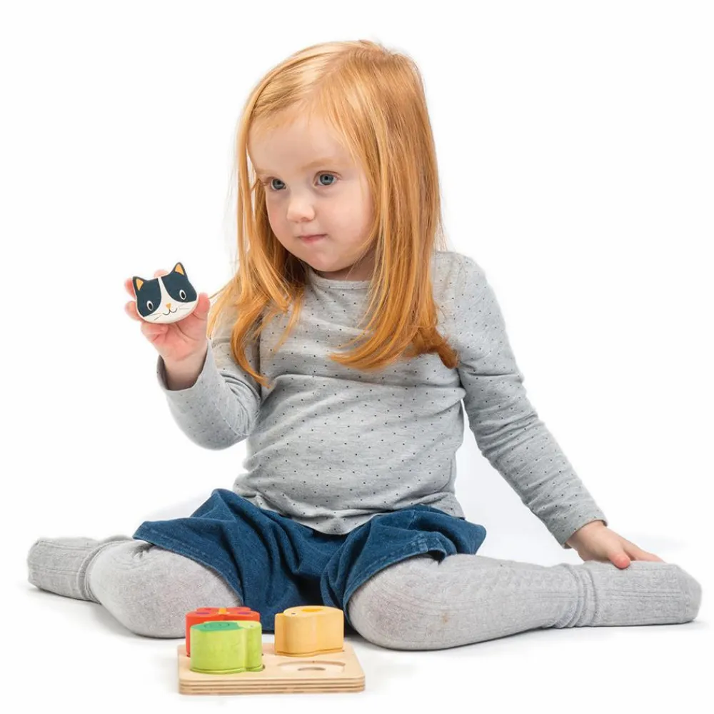 Sættet giver dit barn mulighed for at øve sig i at genkende og udtale dyrenes navne og matche brikken til hullet i bakken, som brikkerne passer i med hver sin facon. På den måde øver dit barn sin hånd-øjekoordination.