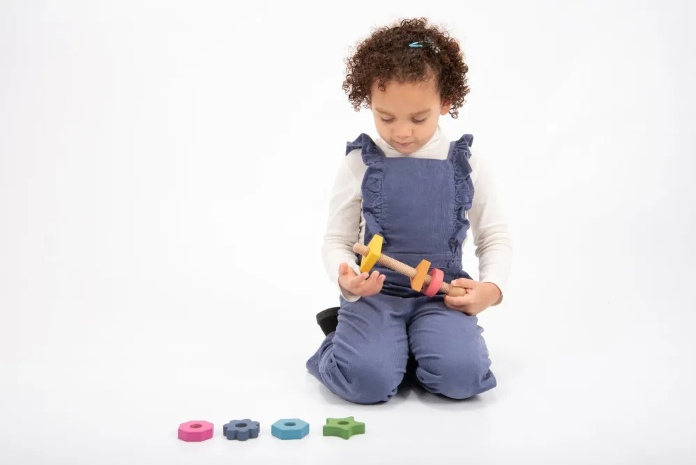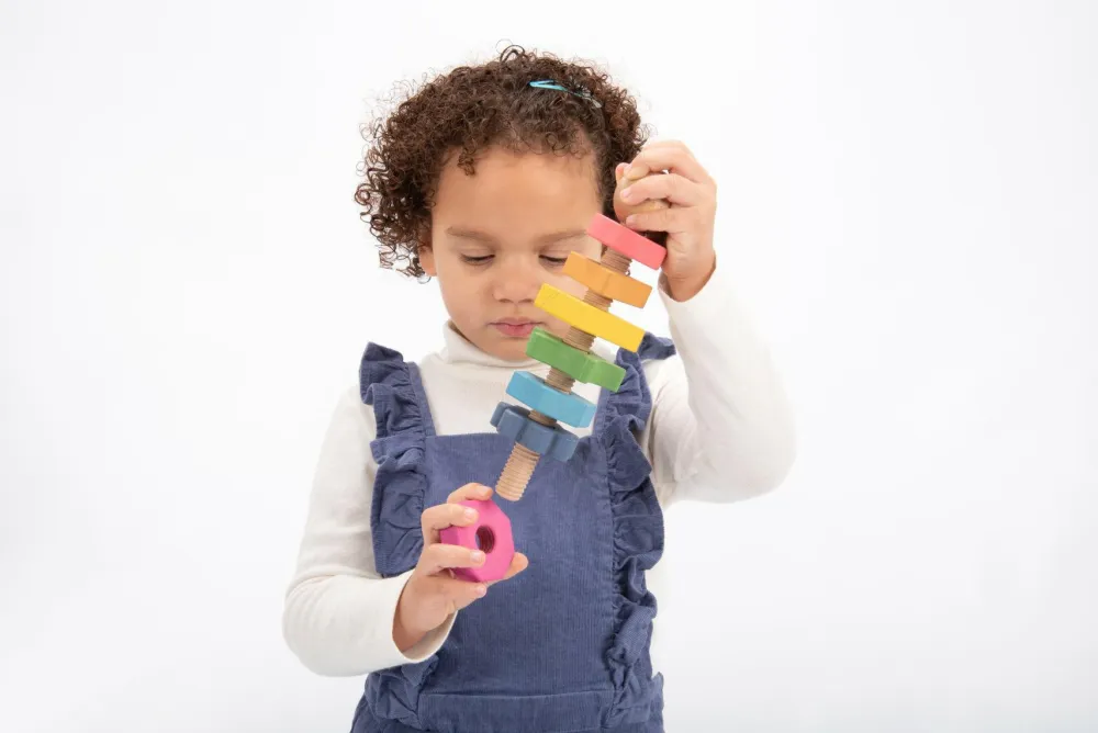 Møtrikkerne er lette for dit barn at holde fast på og skrue på.