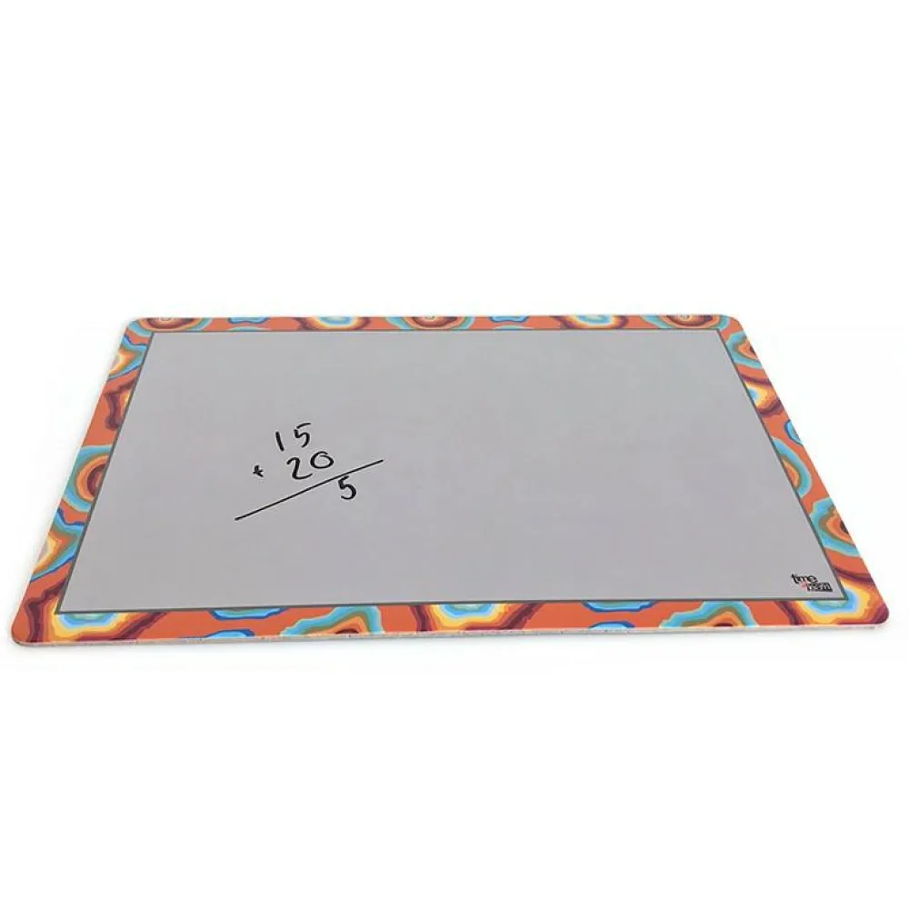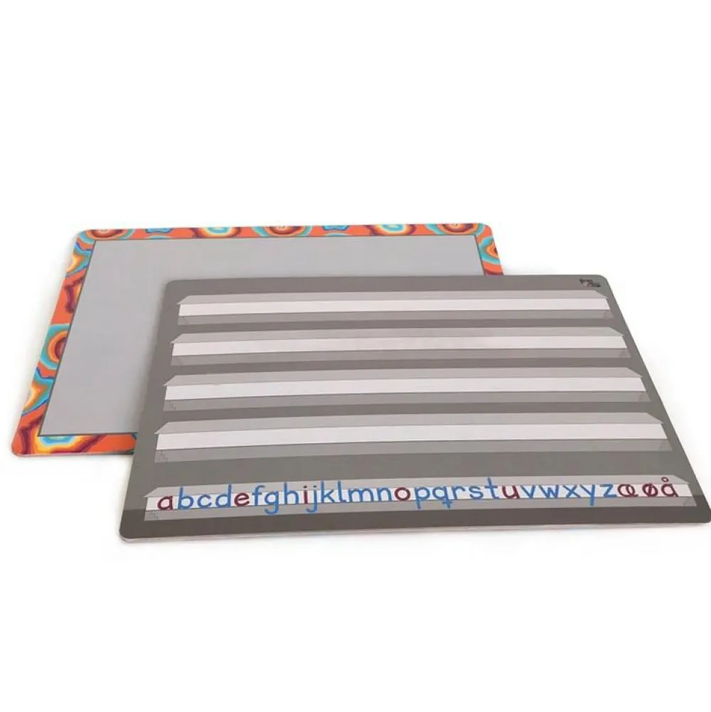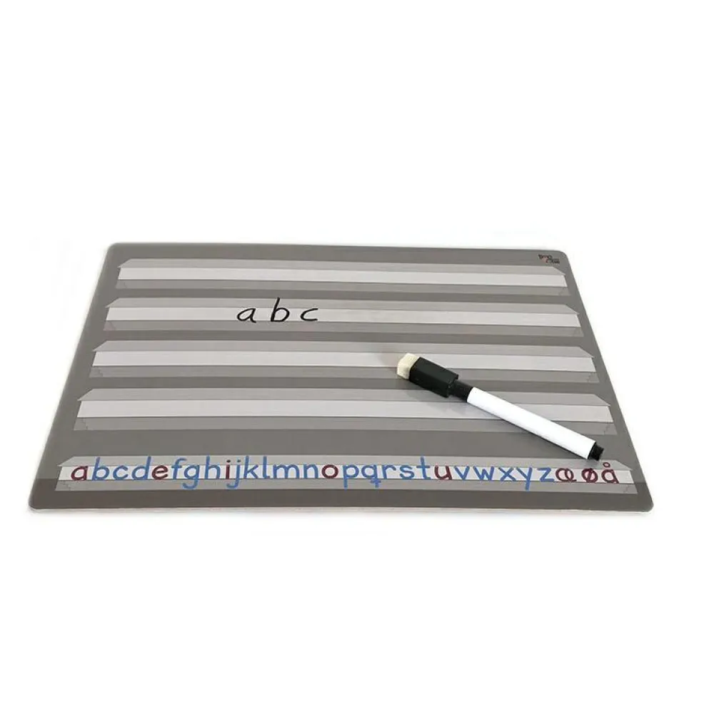 På pladen kan der tegnes og skrives og regnes igen og igen. Pladen er hård, så der behøves ikke et fast underlag.