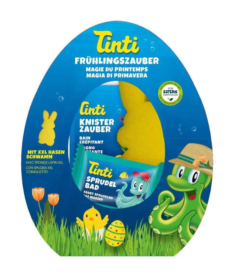 I dette æg finder du 5 forskellige ting fra tyske Tinti, der gør det til en sjovere oplevelse for dit barn at være i bad. På den måde kan det være, at selv et temmeligt badeskeptisk barn kan lokkes i baljen.