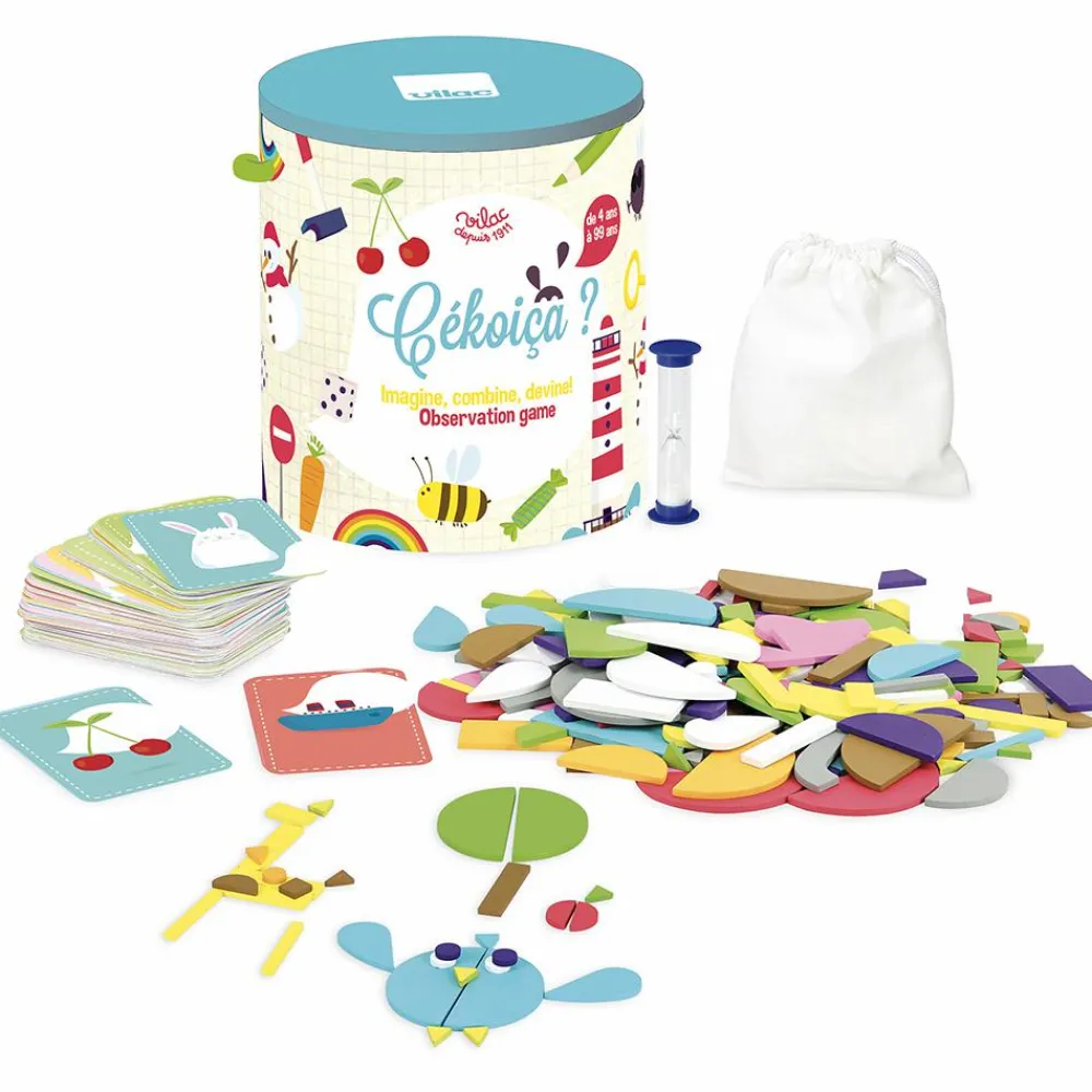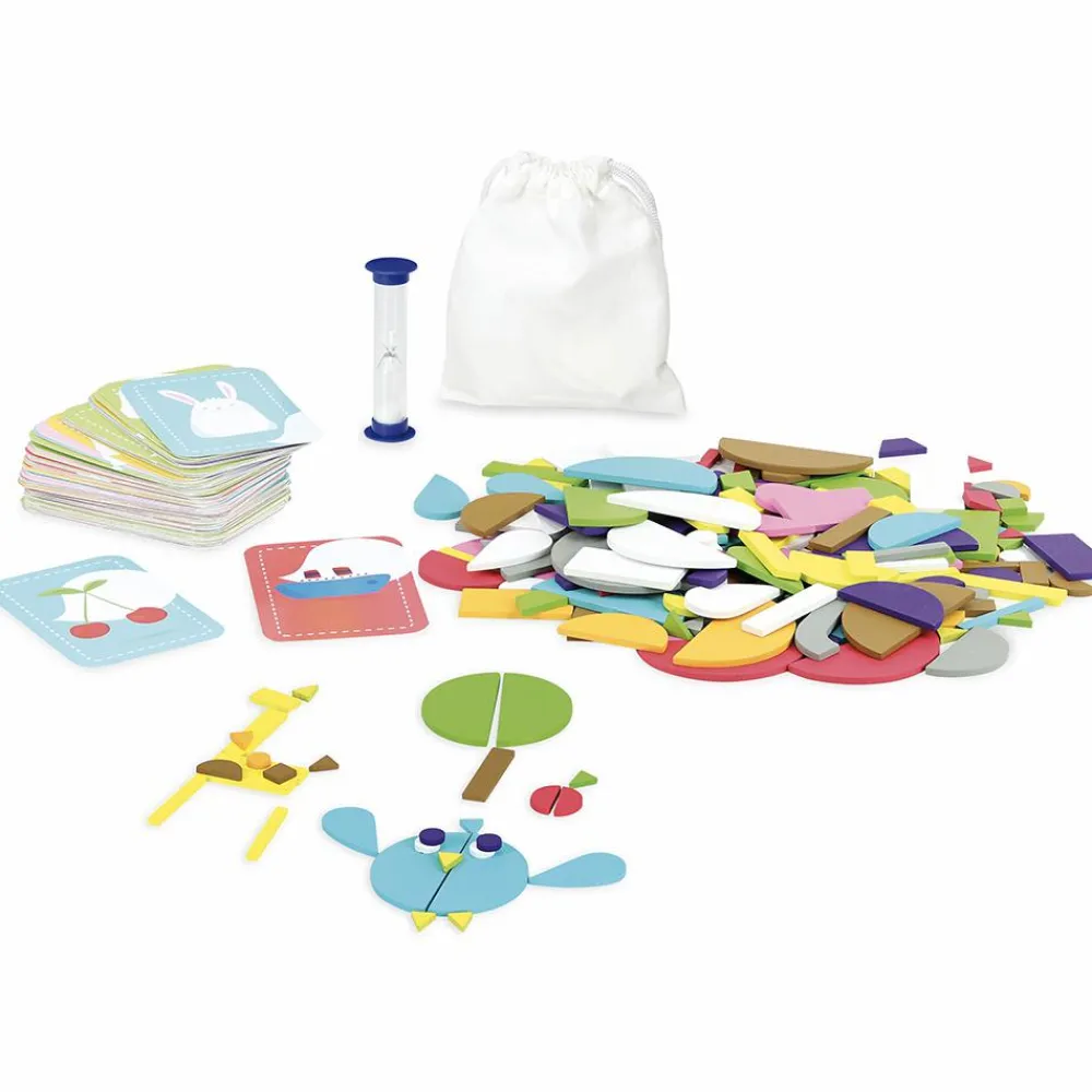Dit barn lærer hurtigt at genkende former og farver og sætte dem sammen til nye figurer. Men brug også spillet til at udvikle dit barns ordforråd ved både at tale om, hvad opgavekortene forestiller (Hvad er det?), men lær også dit barn navnene på de geometriske figurer.