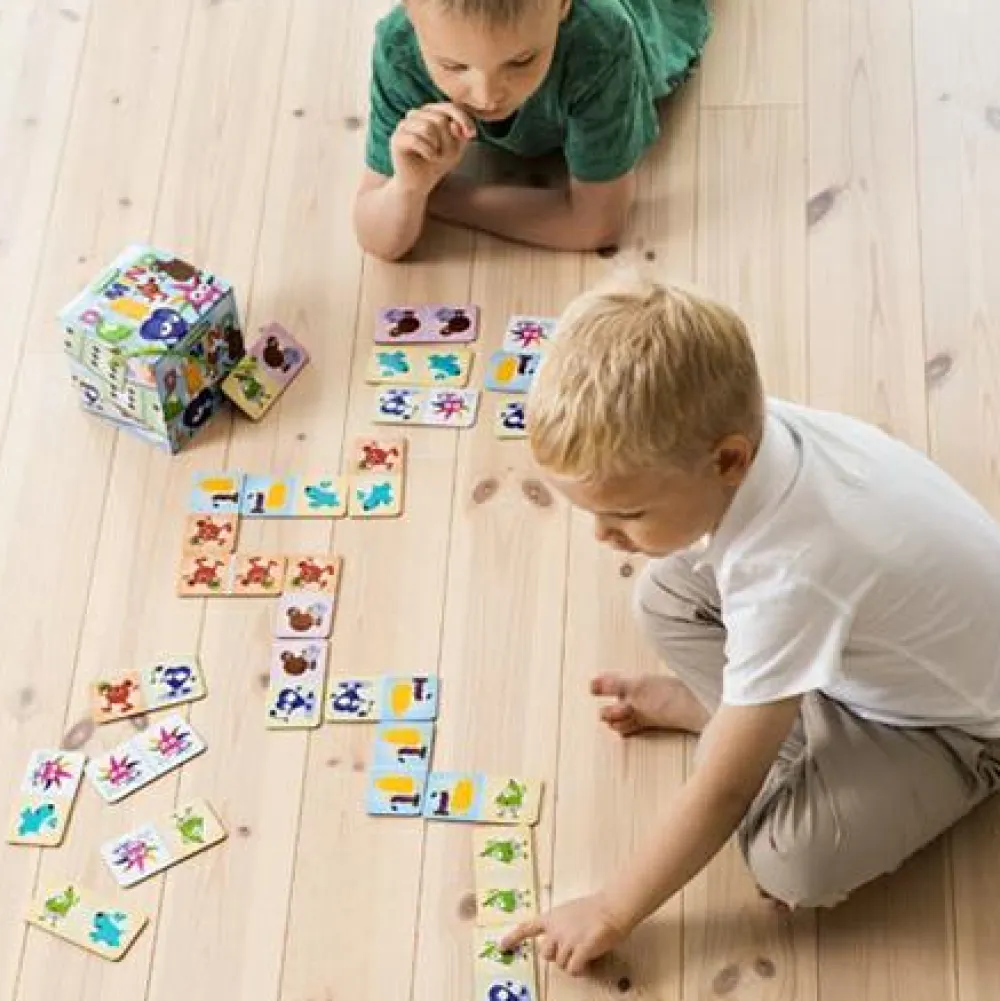 Dominospillet har 28 brikker og er i en smart æske, som er god til at holde styr på brikkerne, når de står på hylden og tigger om at blive leget med.