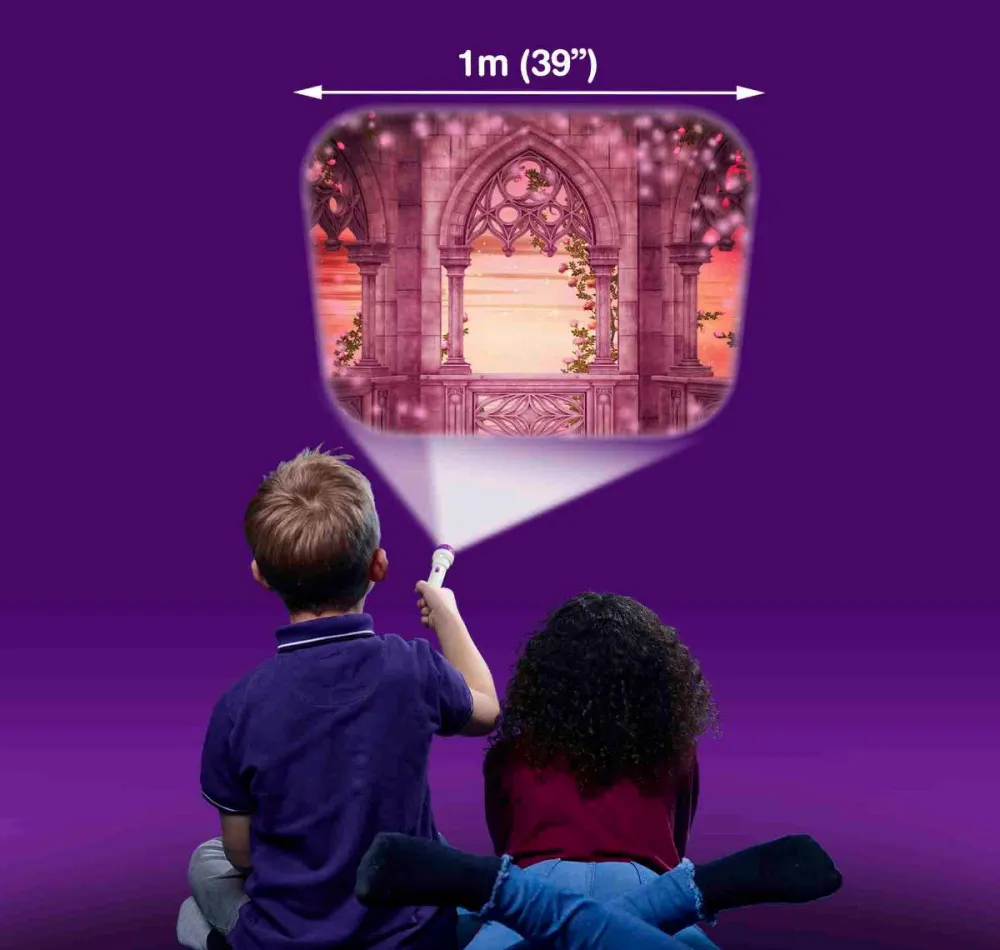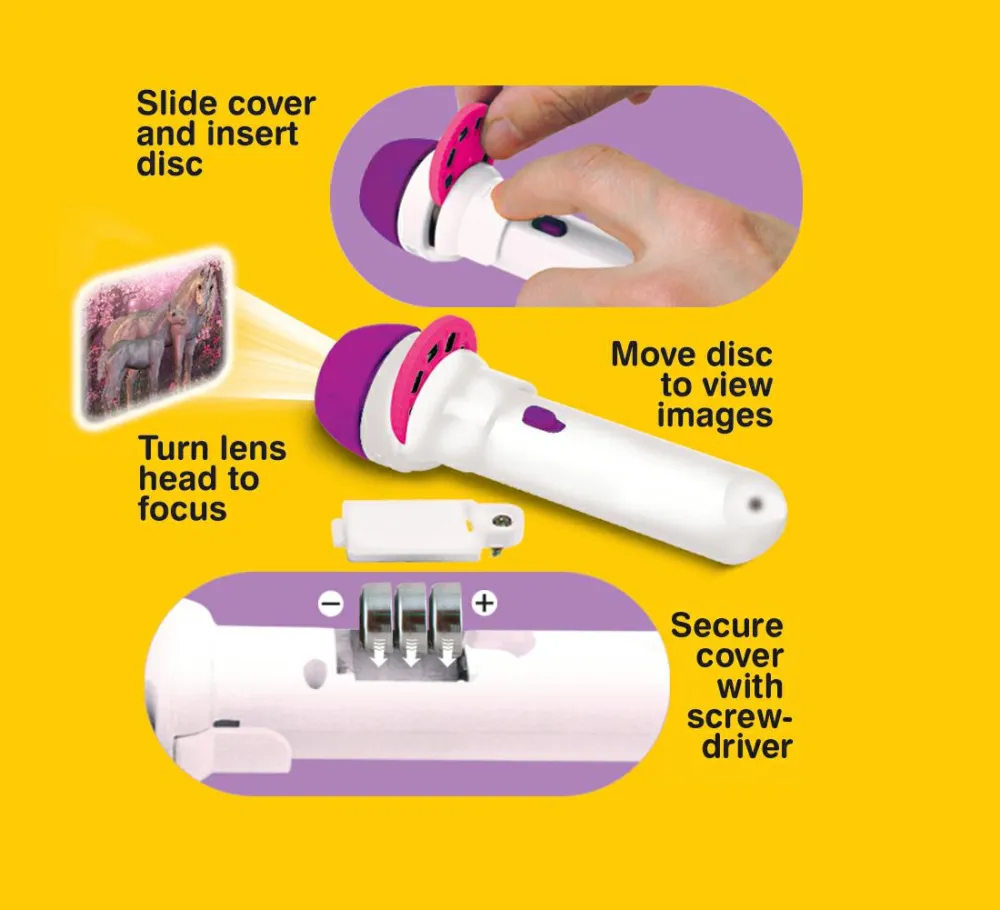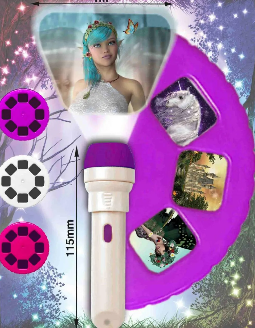 Sej lommelygte, som kan vise 24 flotte og magiskebilleder af feer og enhjørninger.