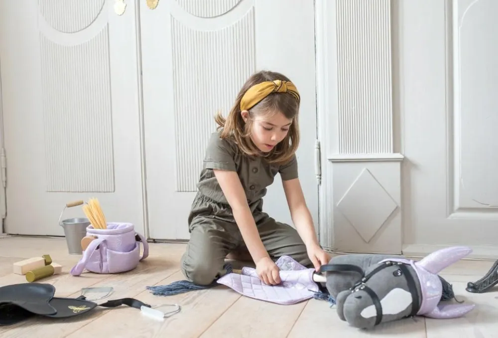 Hutten og underlaget er nemt at sætte på for dit barn, og det giver bare lige dét ekstra til rollelegen eller hvis dit barn træner til konkurrencer med sin tro kæphest. Og så slipper krikken for fluer i ørerne – og høje lyde bliver dæmpet.