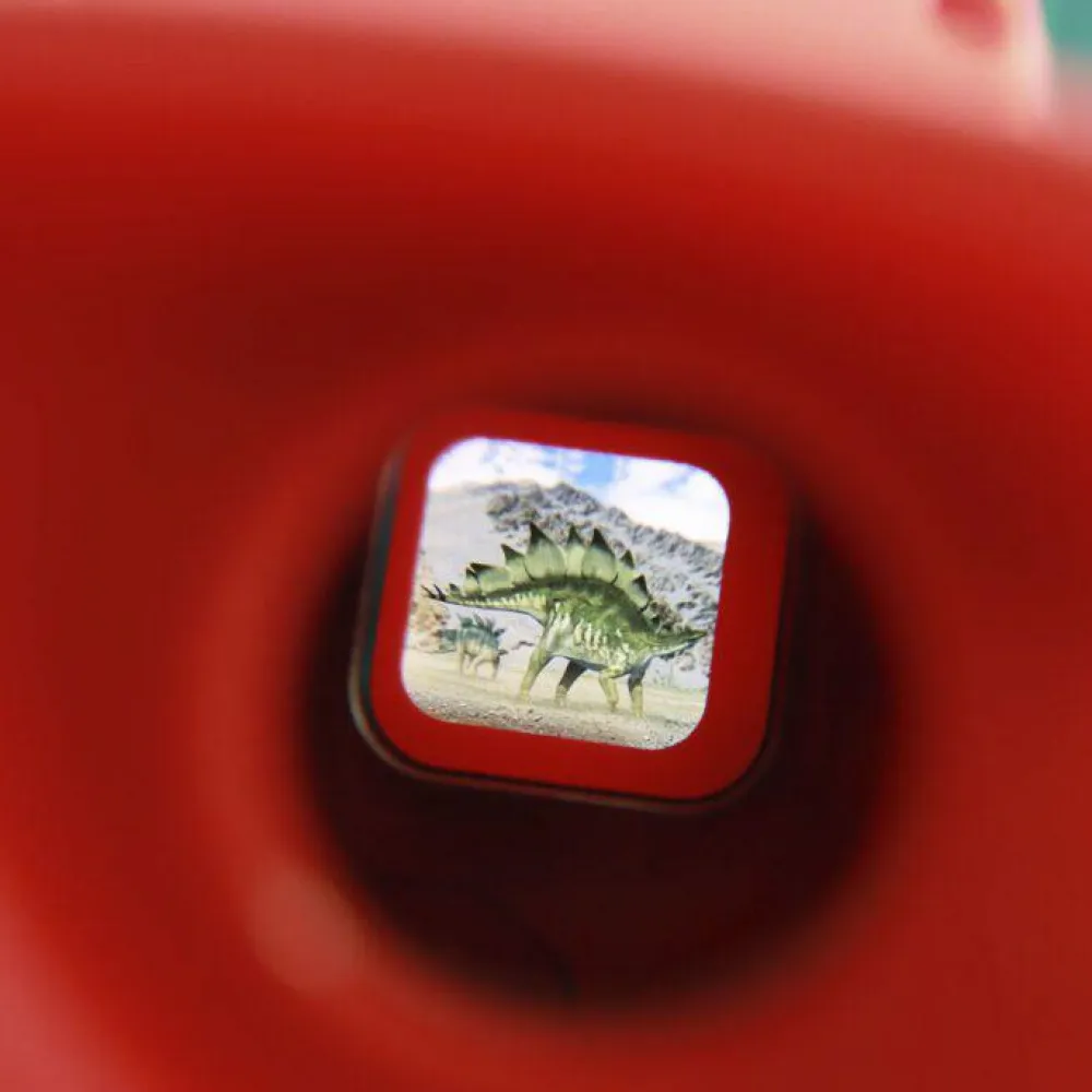 Det er så spændende at gå på opdagelse i andre verdener. Med diasbriller på kan dit barn opleve 3 forskellige miljøer: Dinosaurer, rummet og savannen.