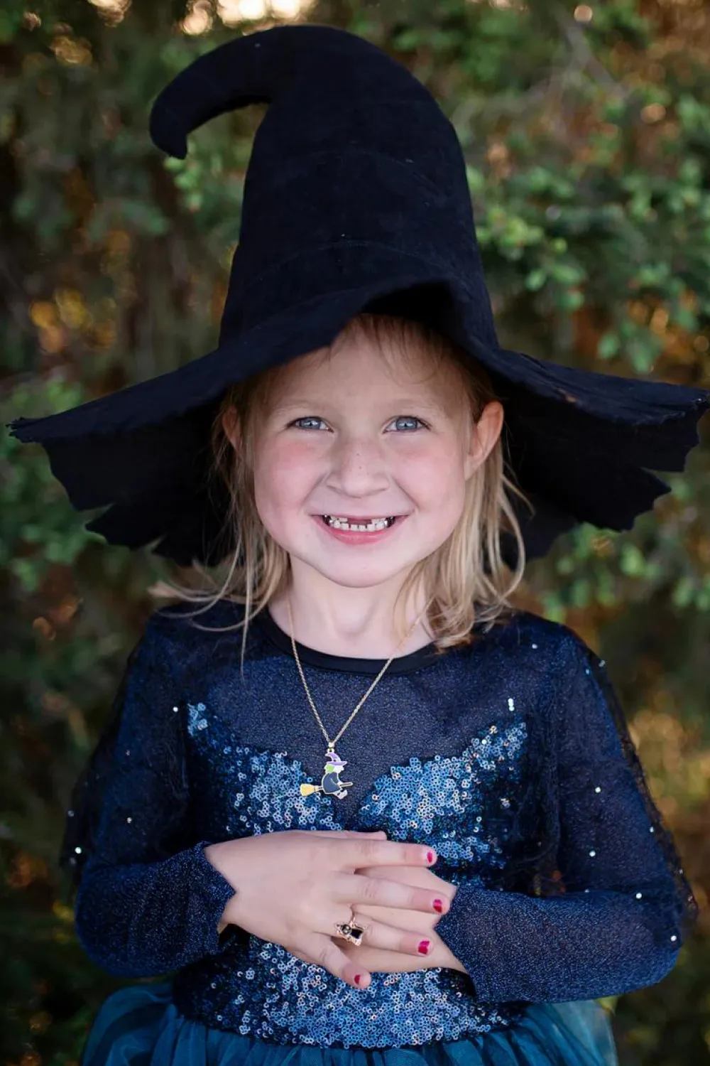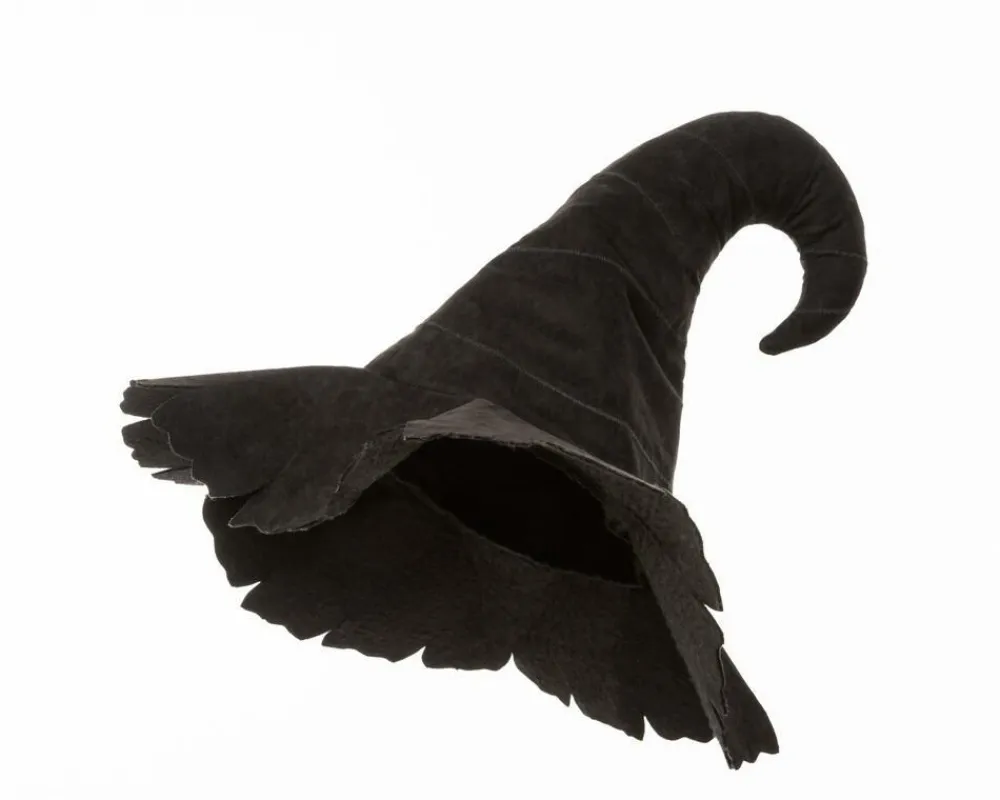 Her er den helt rigtige heksehat med takkede kanter og knæk i spidsen.