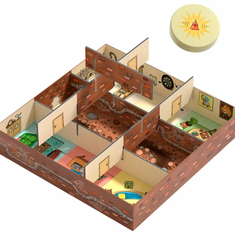 Designet er virkelig kvikt med drejende skiver, som vil kunne få alarmen til at gå i gang. Brættet er i flere etager, så der er både lumske gange og kontorer under brættet.