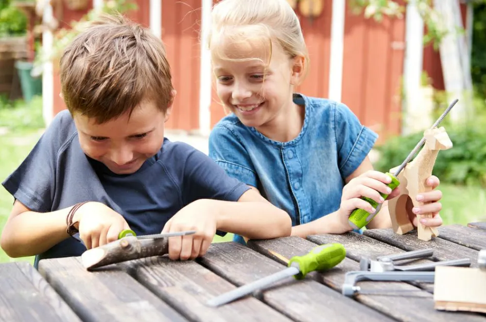 Godt grej i børnestørrelse lader dit barn få erfaring med at bruge hænderne og blive motiveret til at kreere og bygge noget helt fra egen hånd – eller med hjælp fra dig. Det giver selvtilliden et boost opad.