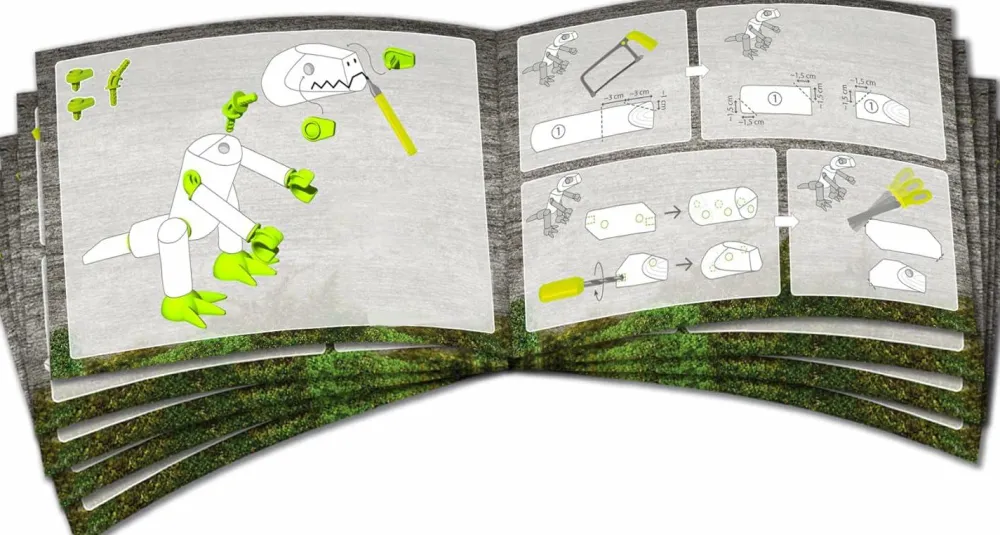 Sættet inkluderer en børnevenlig håndboremaskine og masser af forbindelses- og endestykker, så dit barn kan lave sin egen dinosaurfigur. Og hvis I løber tør for ideer, er der en instruktionsbog, der viser, hvordan man kan samle fire forskellige spændende dinosaurer. Bogen er også fyldt med forslag til andre kreative projekter.