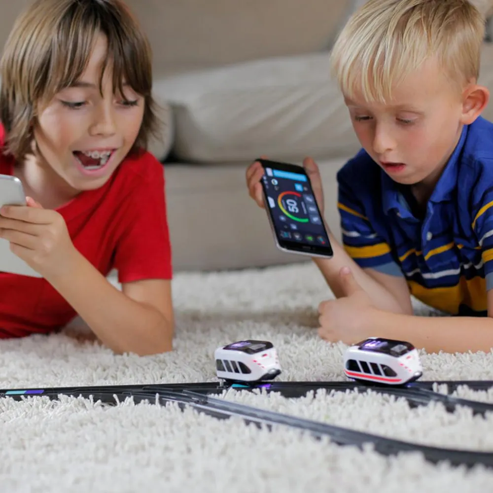 - Fra ca 7 år kan I styre toget med en app, som downloades gratis til alle smartphones. Så styrer I toget ligesom moderne tog styres, nemlig med en robotkontrol, som I kan se på en smartphone. Hastighed, lyd og andre styrefunktioner findes på skærmen.