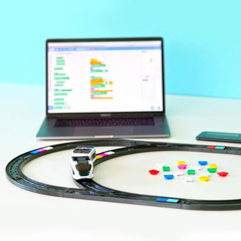 - Fra ca 9 år kan I bruge computerkodesystemet Scratch til at planlægge togets kørsel og handlinger i blokke. En blok ad gangen. Det er nemmere, end det lyder – men dit barn skal have hjælp, og I skal være sammen om det i en periode, før dit barn er selvkørende.