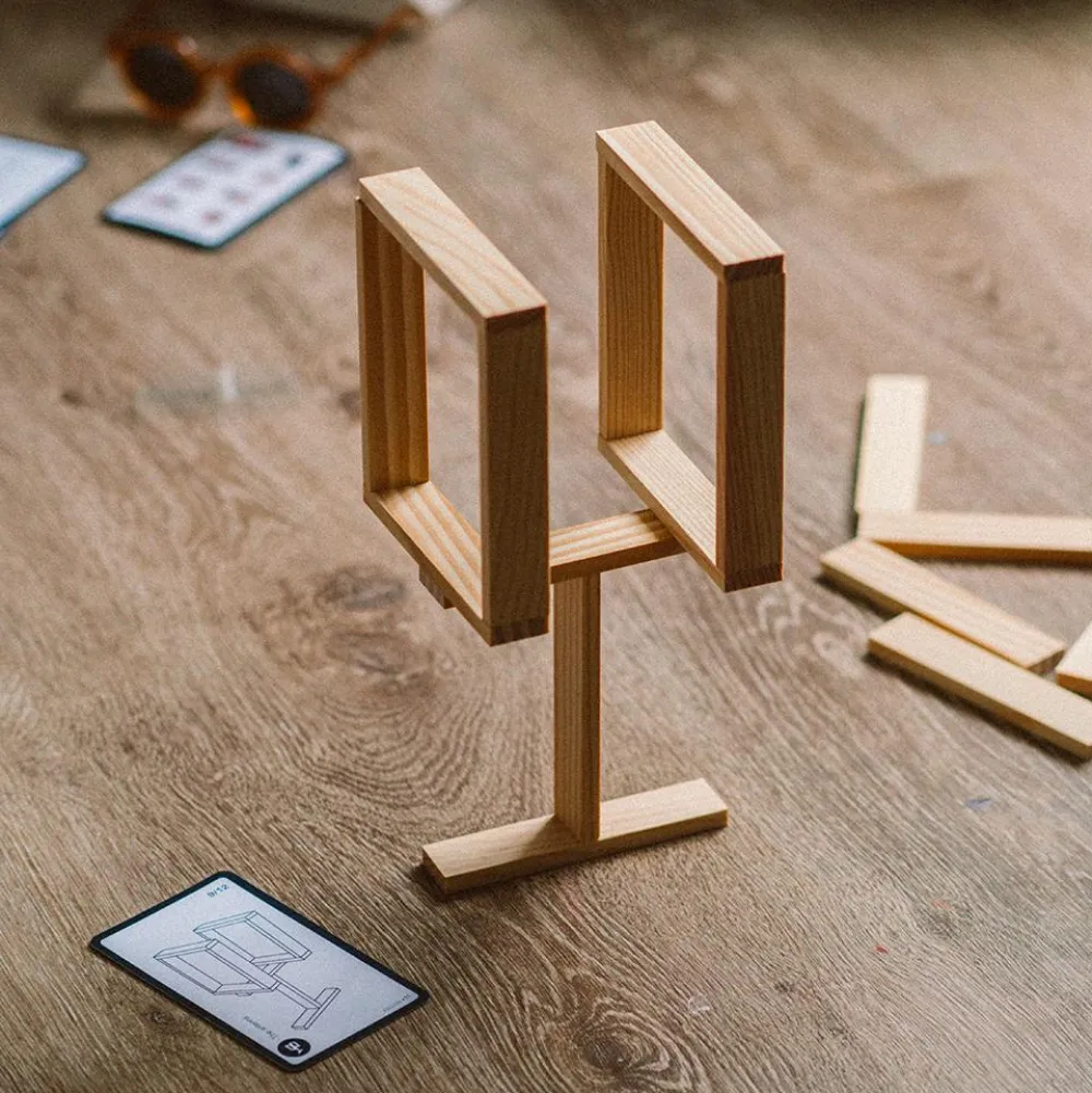 Ved hjælp af 12 udfordringskort skal dit barn (og dig?) rekonstruere de viste modeller. Både hænder og hjerne skal samarbejde for at lykkes.