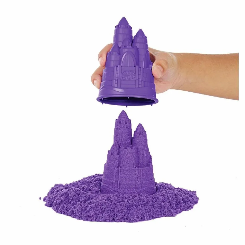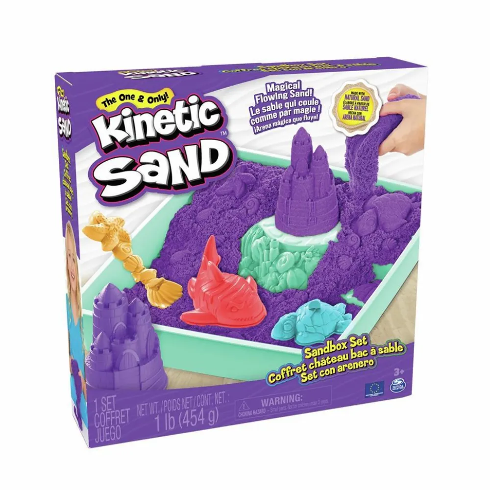 Kinetic Sand® er en vidunderlig ting at dimse med på en sen eftermiddag. Sandet er udviklet af 98 % sand og 2 % bindemiddel og klæber kun til sig selv. Skulle det blive trådt ned i det hvide gulvtæppe, kan det støvsuges op.