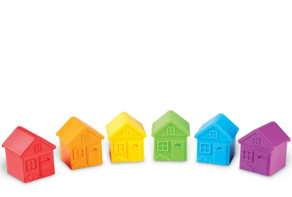 Fine, farverige huse, der gør det sjovt for børn at lære om, hvor de bor og med hvem på med en praktisk dimension.