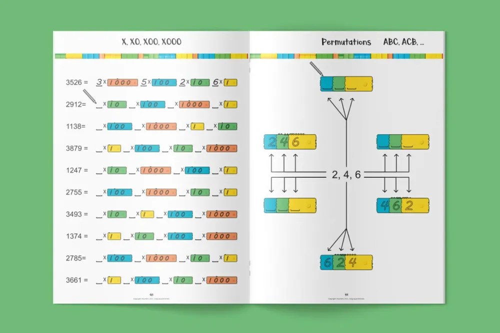 Dette hæfte har 62 sider og er på engelsk, men opgaverne kræver ikke, at man kan læse hverken engelsk eller dansk. De giver sig selv – ligesom newméro brikkerne gør.
