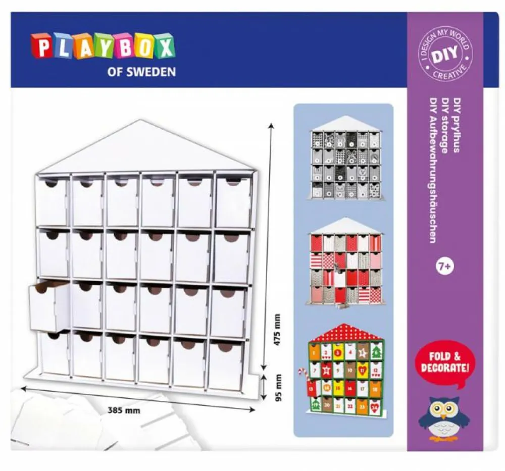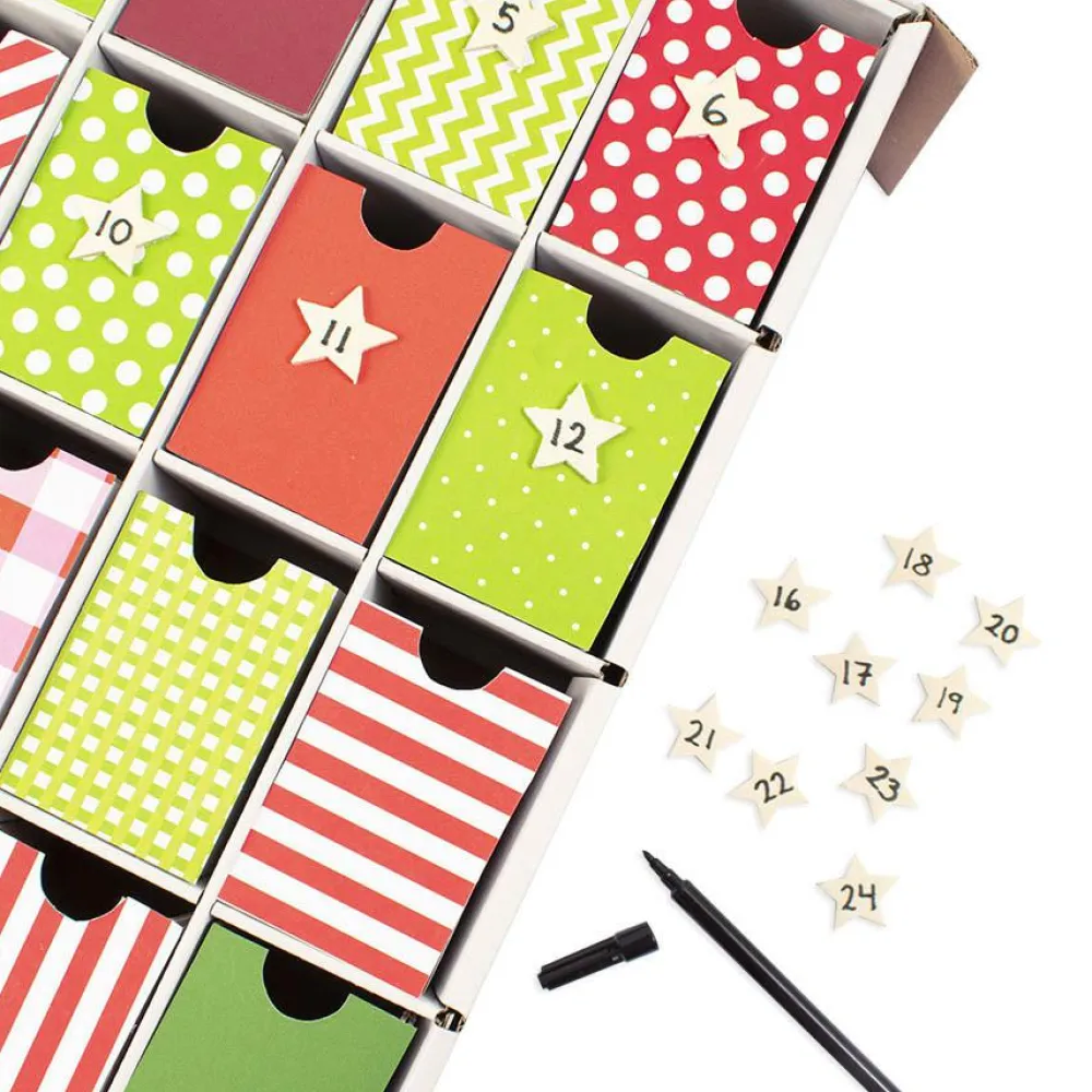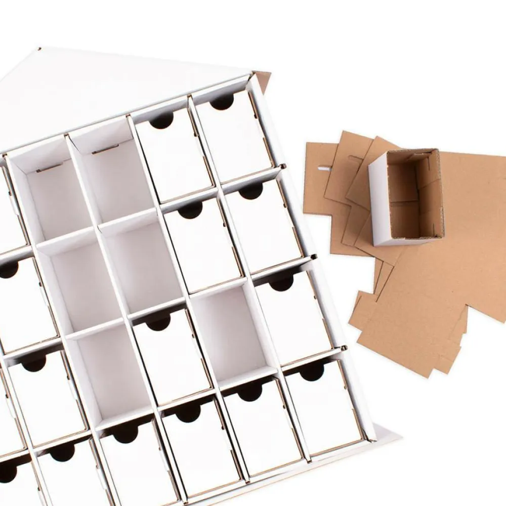 Lav selv jeres skuffedarium med 24 små skuffer i pap og få det, lige som I vil have det.