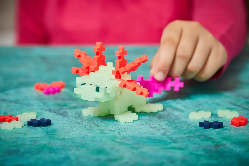 Byg den særlige Plus-Plus-Axolotl, som kan lyse i mørke.
