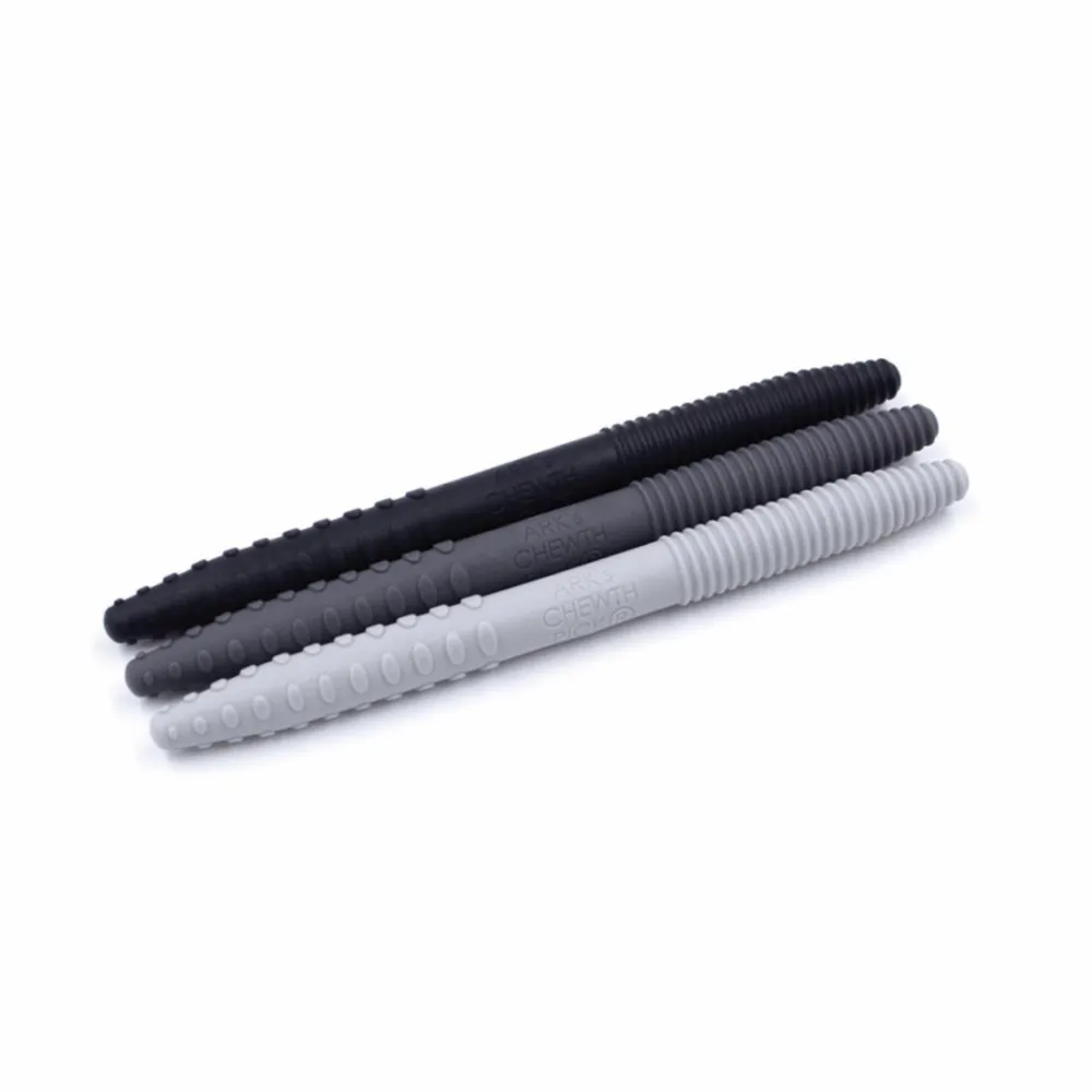 Disse tyggepinde er de slankeste af alle tyggeredskaber. Denne variant har endda dutter på overfladen, så dit barns mundhule, tunge, læber og gane får ekstra mange sanseinput. Det er dejligt for nogle børn, så prøv dig frem.