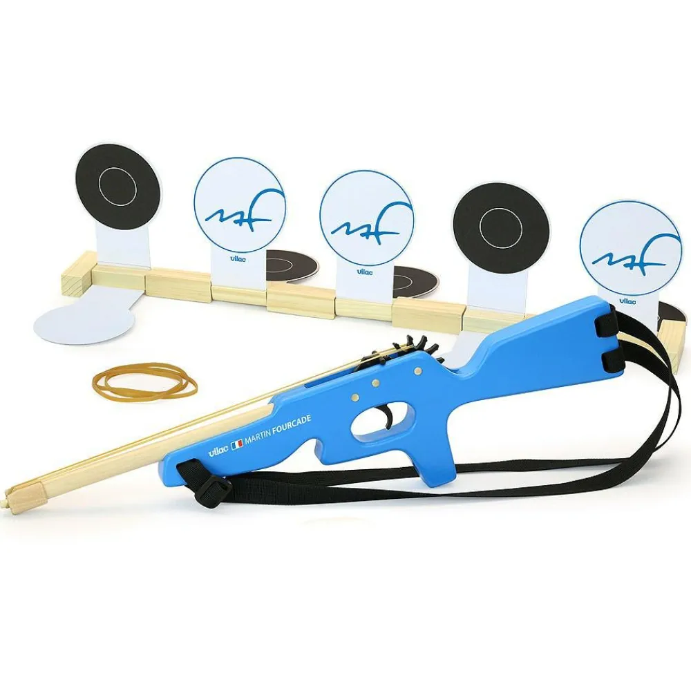 Det er altså en god ide, det her. En skiskydningsriffel, der skyder med spændte elastikker og vælter målskiverne omkuld.