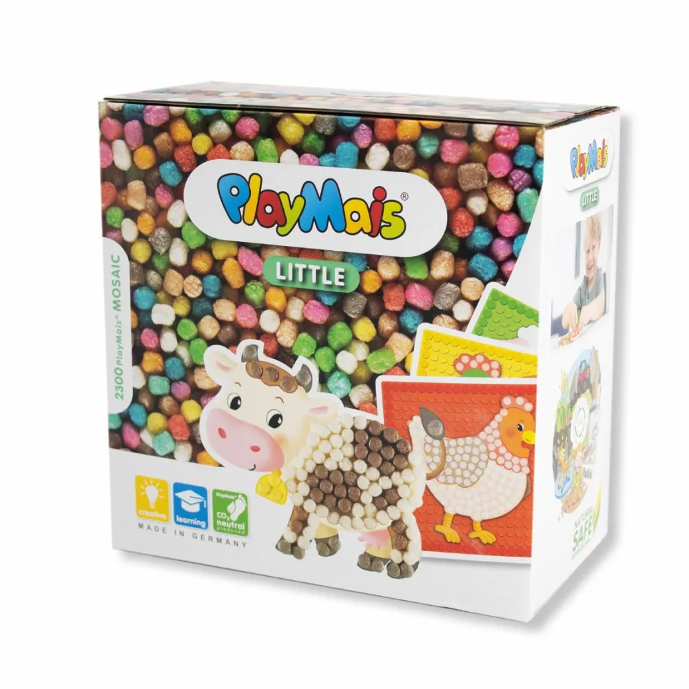 De dufter lidt af popcorn uden salt. Lad være med at gøre et måltid ud af det, men det er ikke farligt, hvis dit barn tager en bid . Du kan få både opgavebøger, skabeloner og alle mulige andre former for sæt med PlayMais. Både små PlayMais til at lave mosaikker med og hjælpe dit barn til at forstå overgangen mellem 2D og 3D kreativitet, og større PlayMais til at kunne lave endnu større kreationer efter instruktioner eller fri fantasi. PlayMais bliver produceret i Tyskland, så transporten er ikke så lang. Desuden er materialet skabtaf majsmel, der er helt bionedbrydeligt. Intet plast.
