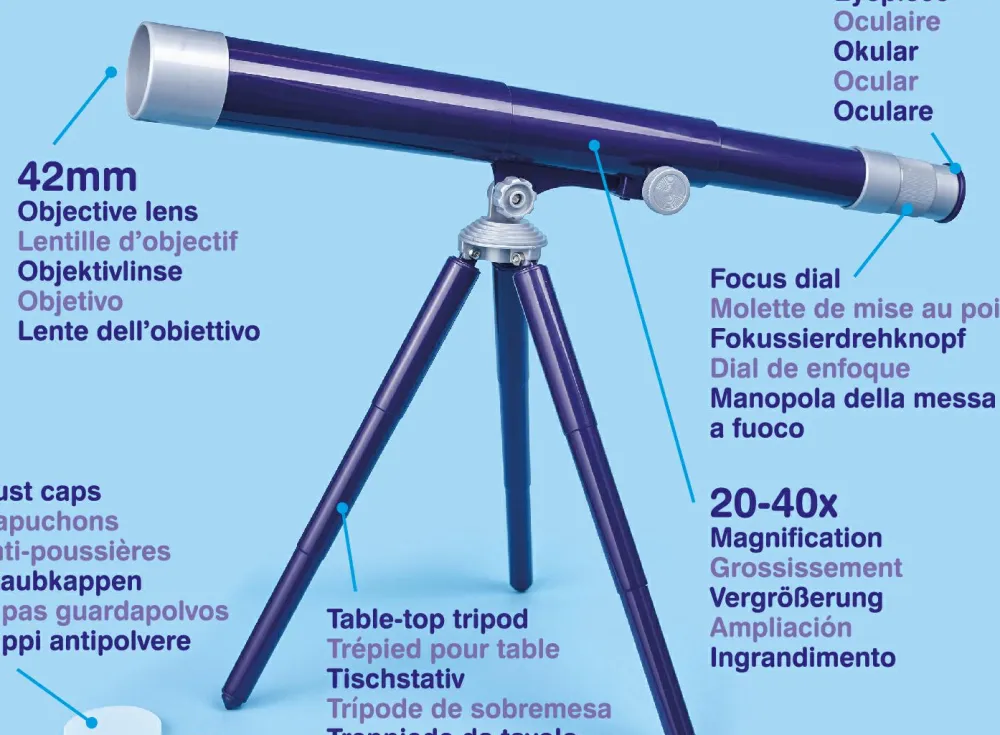 Forstørrelsen er kraftig nok til at kunne give dit barn en fornemmelse af, hvordan det er at observere astronomiske genstande.