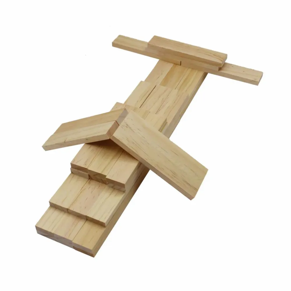 De aflange byggeklodser af træ kan blive til alt fra høje tårne, slotte og borge til huse, monstre, en færge, en lang dominobane at vælte eller måske Eiffeltårnet, hvis I er tålmodige og gode til at tænke rumligt.