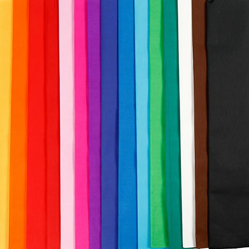 I denne pakke er der 15 læg med crepepapir i forskellige farver.